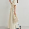 ◇ ⊂ CLASSICAL ELF クラシカルエルフ 背面紐 ノースリーブ 膝丈 ワンピース サイズM ネイビー レディース E