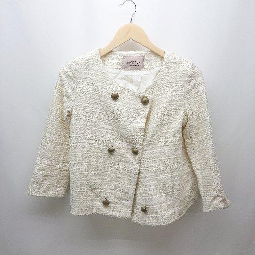 ◇ DressLab ツイード フォーマル 入学式 ラウンドネック ひざ丈 W セットアップ サイズS ホワイト レディース E