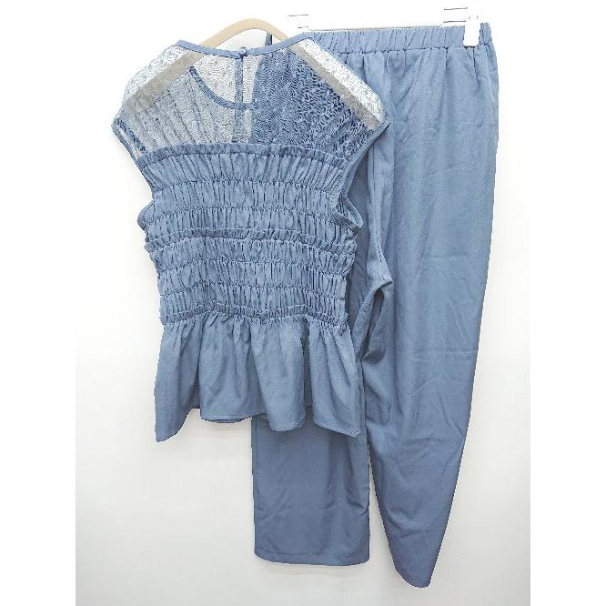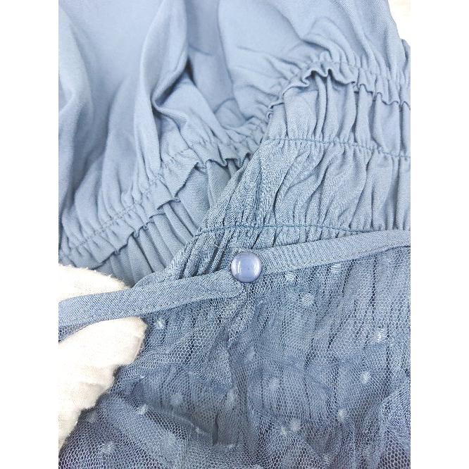 ◇ merlot plus メルロープリュス 水玉 シアー レース 切替 セットアップ 上下 ブルー系 レディース P