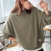 ◇ MONO-MART モノマート カジュアル ハーフジップ ロゴ 厚手 長袖 スウェット サイズL グリーン レディース E