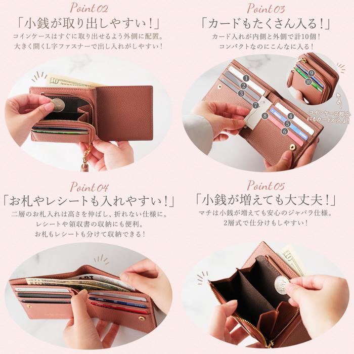 ☆ ピンクベージュ LIZ DAYS タッセル付き二つ折り財布 リズデイズ LIZDAYS 二つ折り財布 レディース ブランド 本革 財布 カードケース