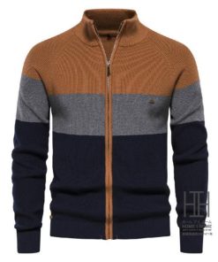 ホームアイホーム ニットジャケット カーディガン メンズ 冬 ファスナー ビジネス ニット 綿 大きい 長袖 ボーダー柄 おしゃれ 柔らかい 防寒着 秋 秋服 冬服 紳士カーディガン