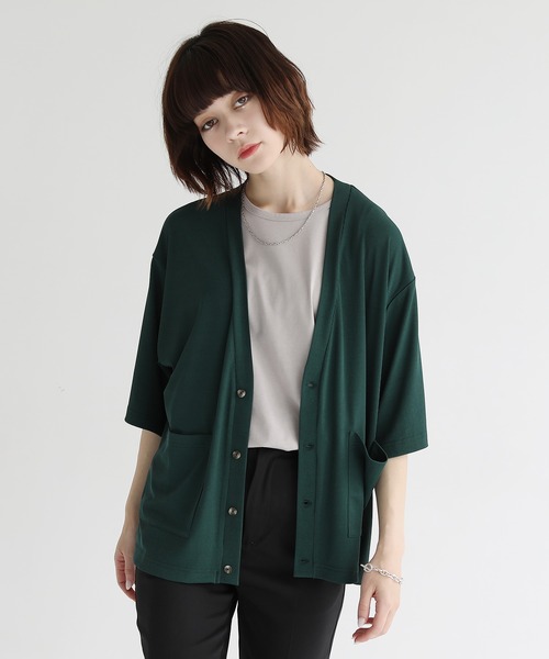 参考商品名:ルーズシルエット5分袖サマーカーディガン