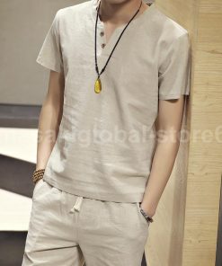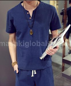 【値下げ】セットアップ 夏 上下セット メンズ カジュアル 父の日 部屋着 薄手 ゆったり リネン 通気性 接触冷感 普段着 通学 大人 無地 シンプル