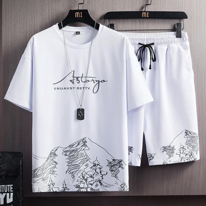 【大特価】セットアップ メンズ ジャージ スウェット 上下セット 半袖 ゆったり 通気性 涼しい 英字 山柄 普段着 カジュアル 吸汗速乾 ルームウェア