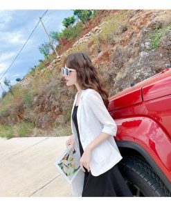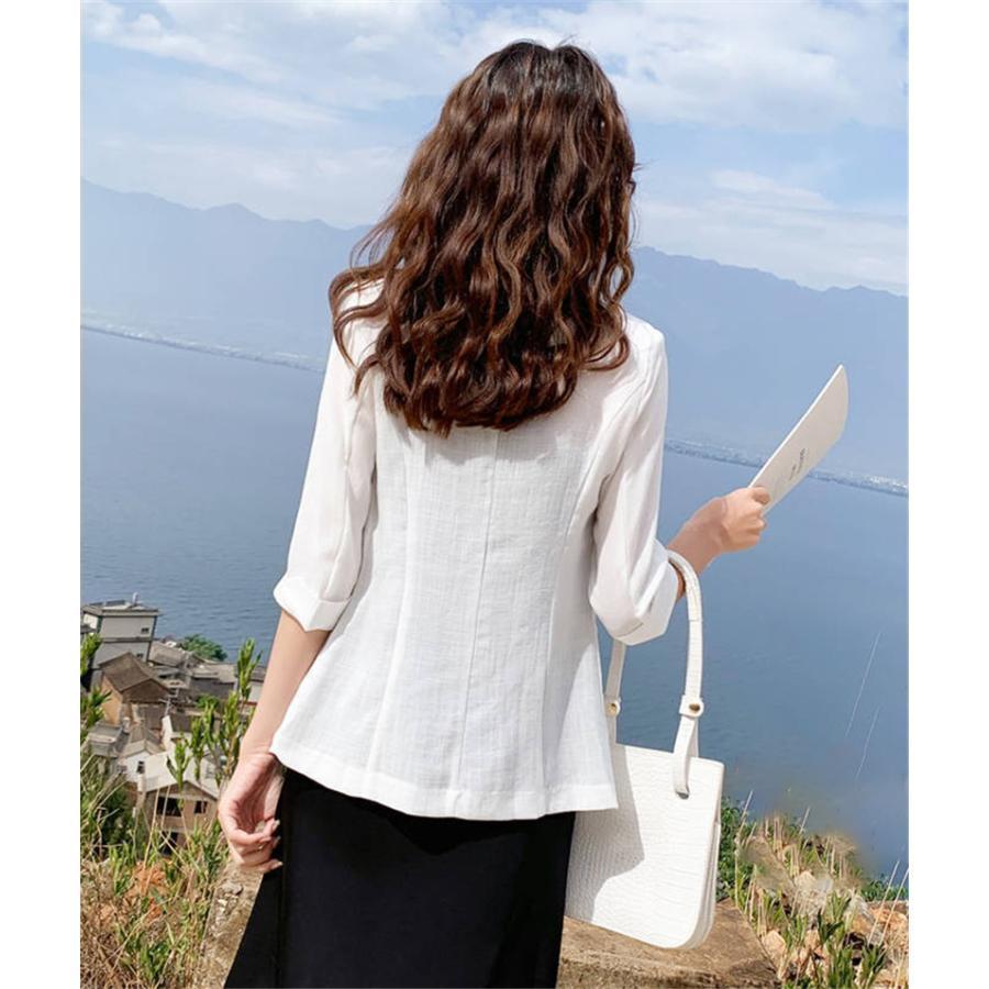 【大特価】テーラードジャケット スーツジャケット レディース 夏 薄手 サマージャケット 単品 オフィス 通勤 7分袖 涼しい 洗える 綿麻混 美ライン