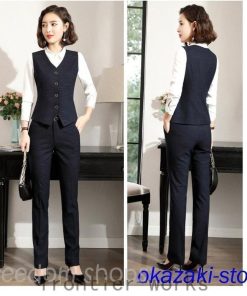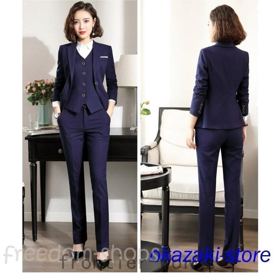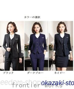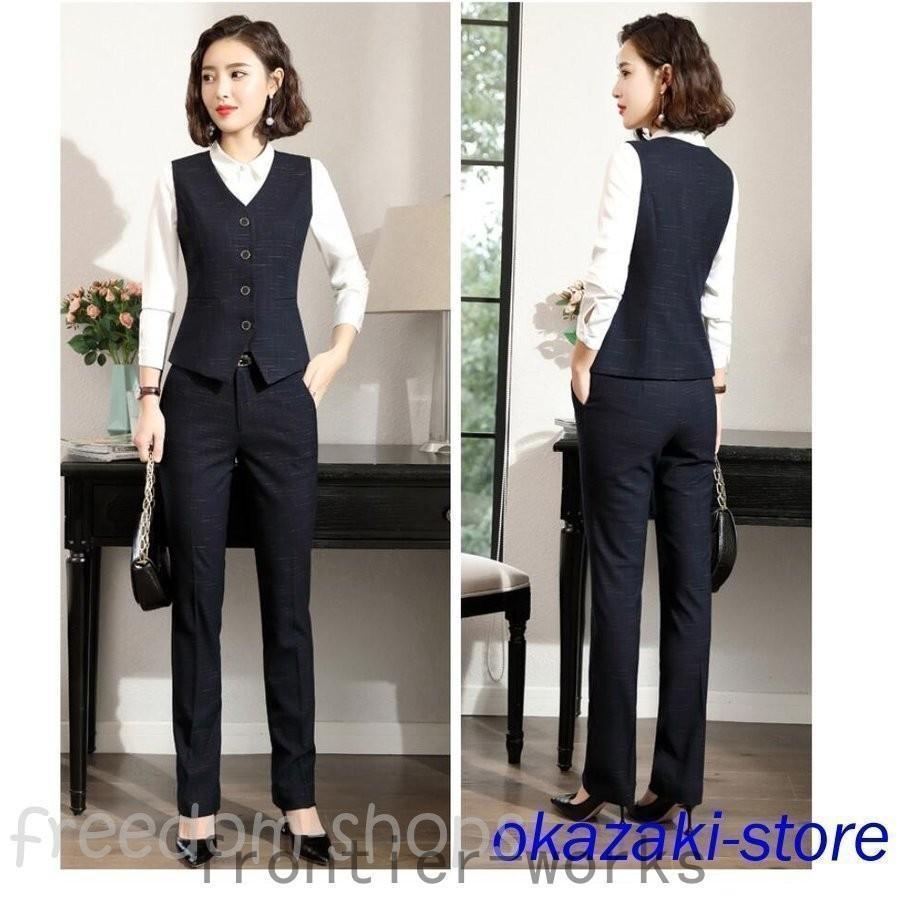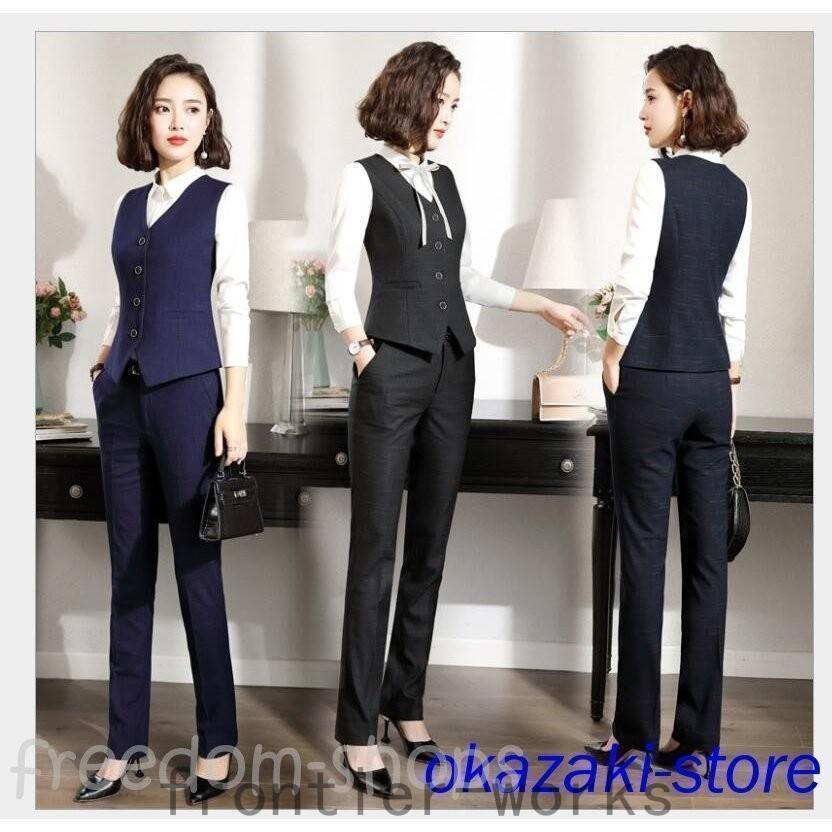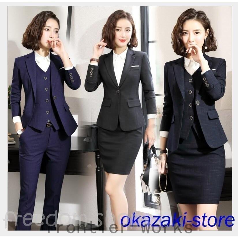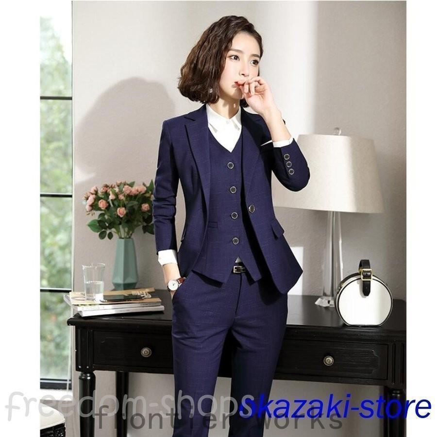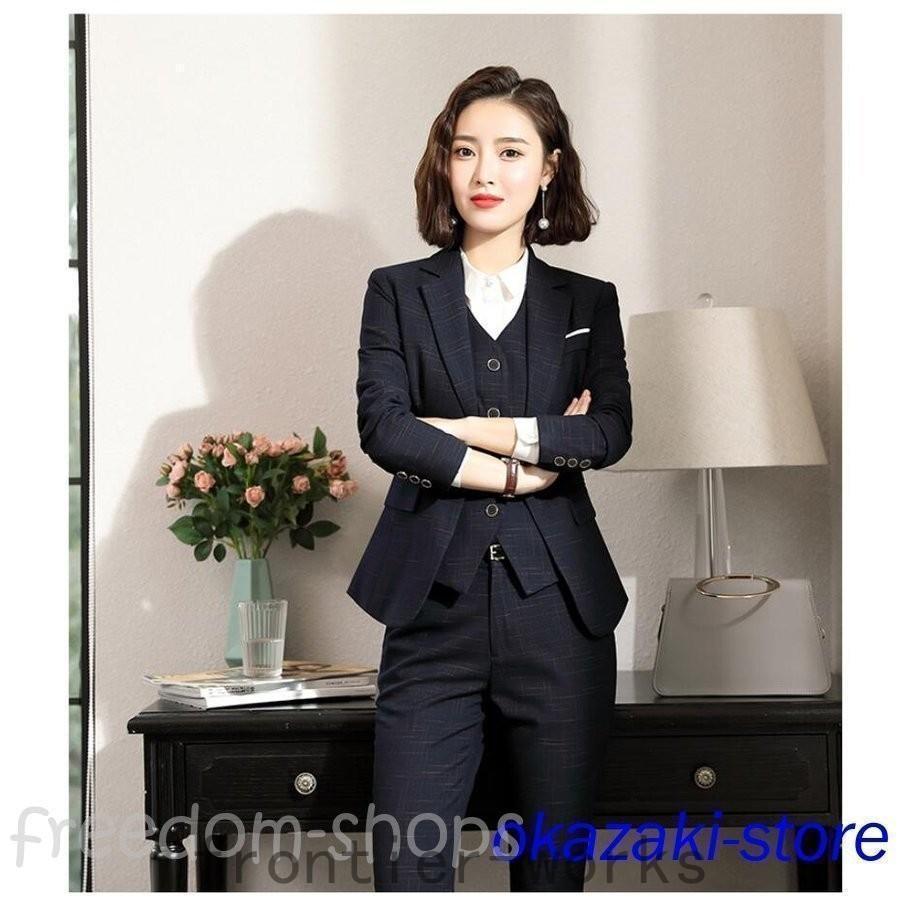 【大特価】レディース3点セット スーツセット パンツセット チェック柄 20代30代40代 事務服 フォーマル 細身シルエット 制服 OL ビジネススーツ