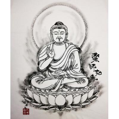 ふるさと納税 和泉市 手描きTシャツ 仏画 薬師如来 白 (半袖 XLサイズ)