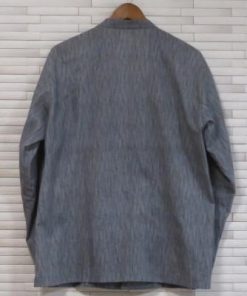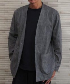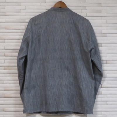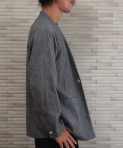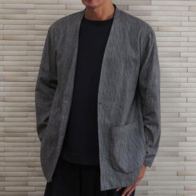 ふるさと納税 滋賀県 【和心衣・ワゴロモ】高島ちぢみのメンズノーカラー羽織ジャケット ブラックMサイズ