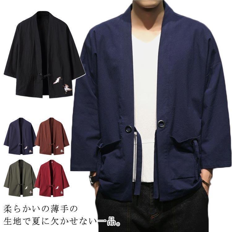 カーディガン 夏 7分袖 和風 パーカー メンズ レディース 刺繍 Yシャツ 祭り 羽織 和式 おしゃれ 和服 着物 長袖 甚平 ゆったり