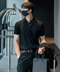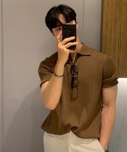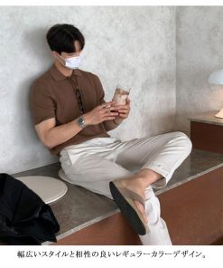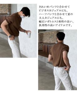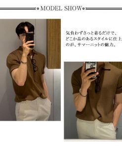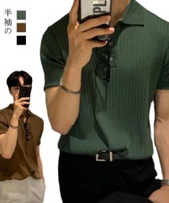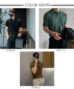 サマーニット ニットポロシャツ メンズ 半袖 リブニット トップス ゴルフ スポーツ ビジネス カジュアル 薄手 無地 全3色