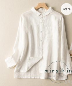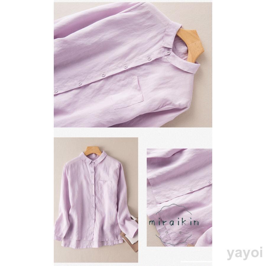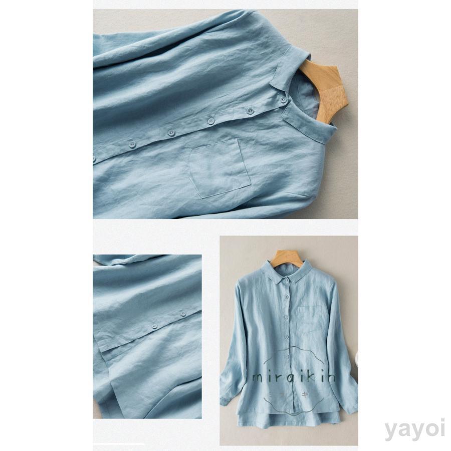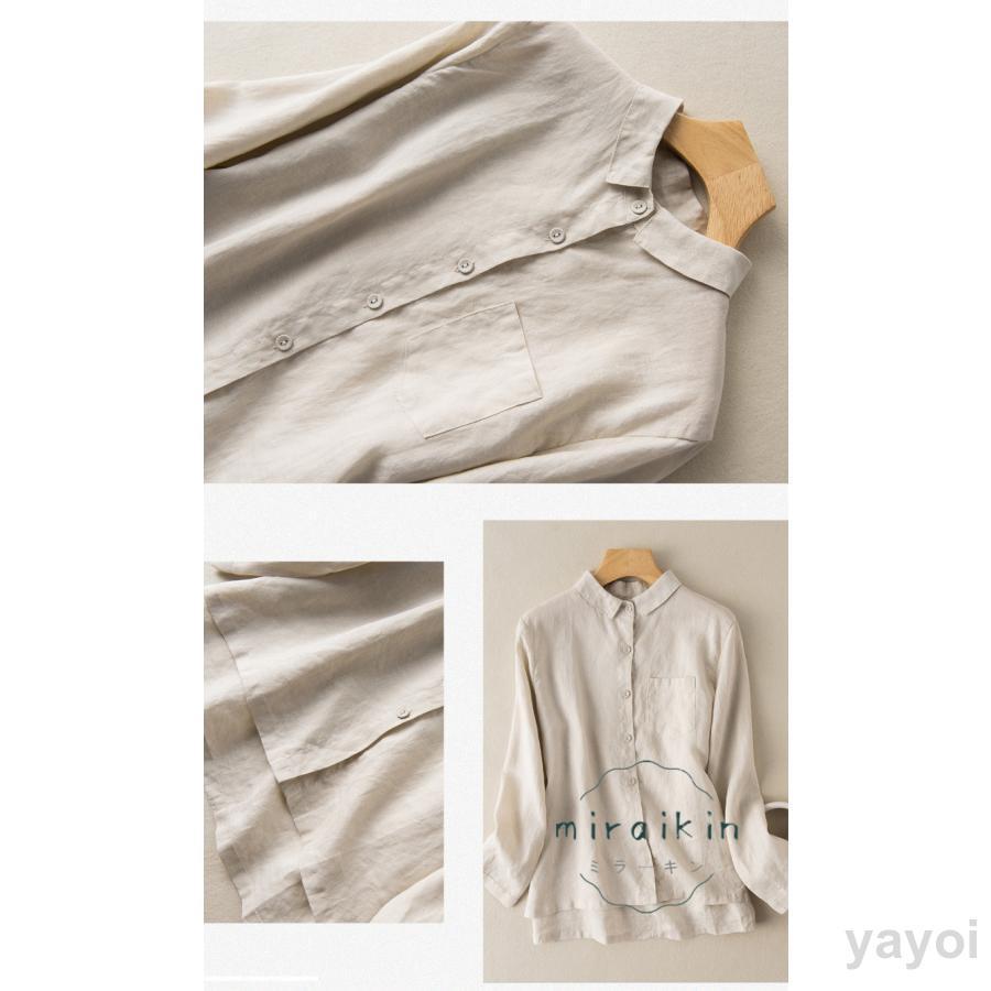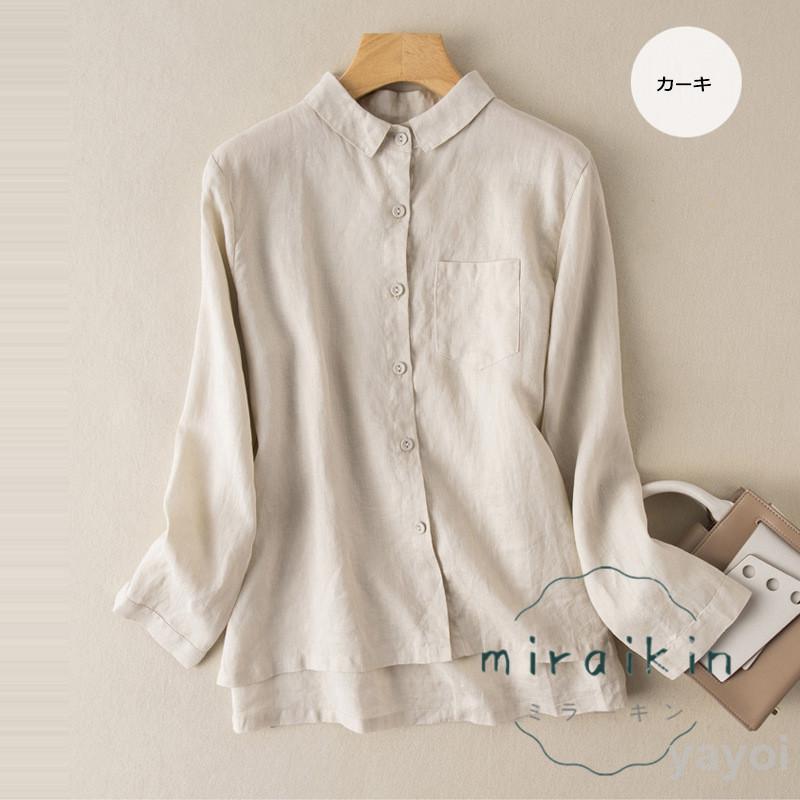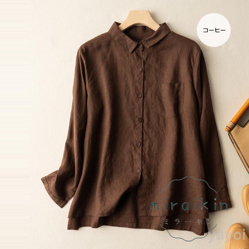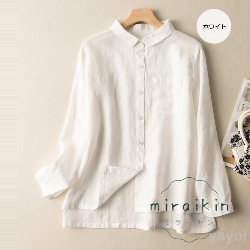 トップス ブラウス シャツ シャツブラウス 長袖 レディース 40代 体型カバー 綿麻シャツ 開襟 前開き ガーゼ 大きいサイズ アウター コーデ 柔らかい 着心地いい 肌触りいい シンプル 通気性 柔らか カジュアル風 女の子 女 ウィメンズ ママ ー 母親 母 女性用 ガーリー セレブ 大人