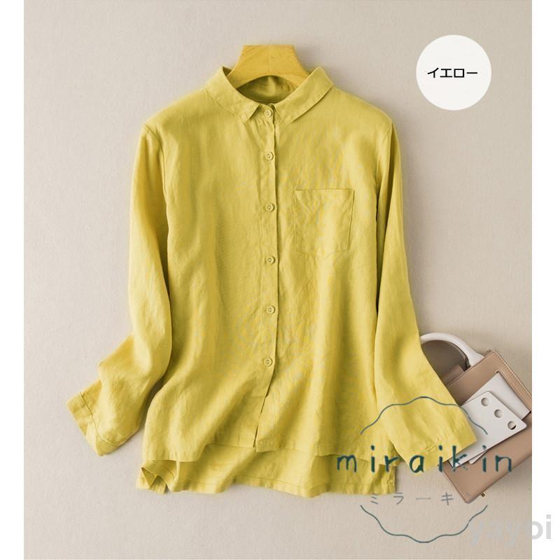 シャツ レディース シャツブラウス ガーゼシャツ 春 夏 秋 長袖 リネンシャツ 綿麻風 トップス シンプル オフィス ゆったり 大きいサイズ 40代 前開け 通勤