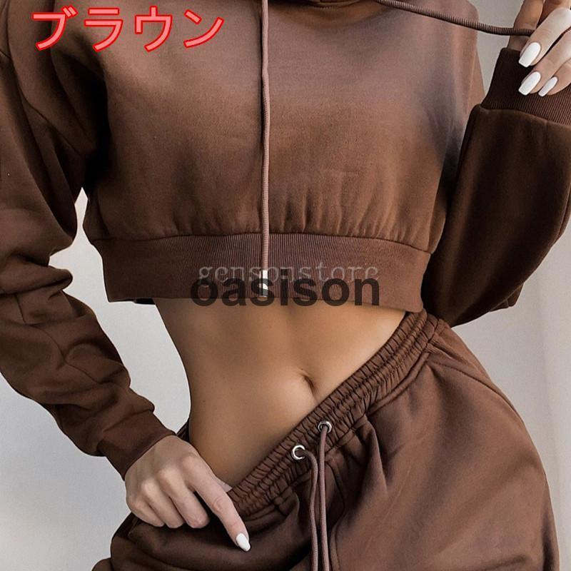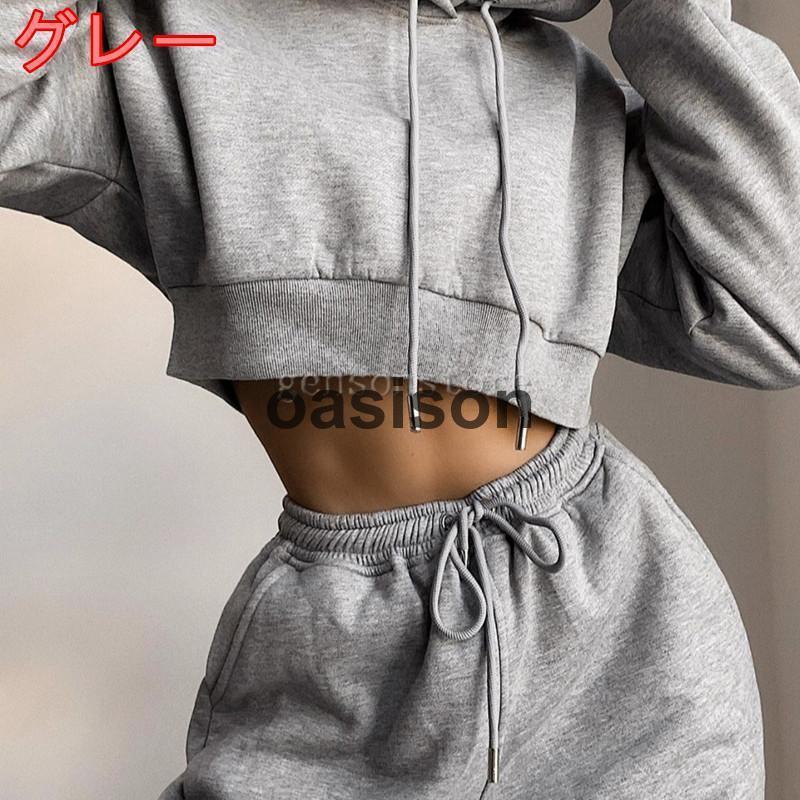 春 秋 新作 部屋着ルームウェア 上下セット トップス ボトムス セットアップ 部屋着 ショート丈 へそ出しパーカー レディース 女性用 大人 スウェット 上下セット セットアップ プルオーバー ボトムス トレーニングウェア スポーツ 運動 スポーティー シンプル レディース ルームウェア 部屋着