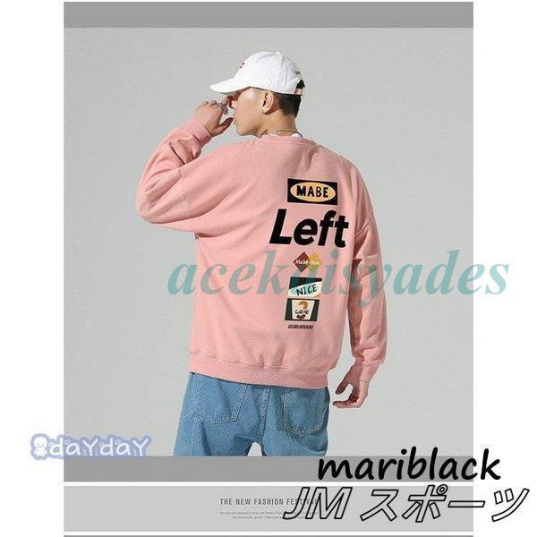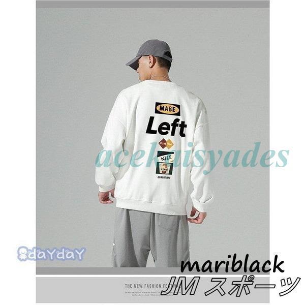 スウェットトレーナー メンズ 春服 プリント長袖Tシャツ クルーネック 英文字 トレーナー 韓国ファッション 通学 通勤 カジュアルトップス