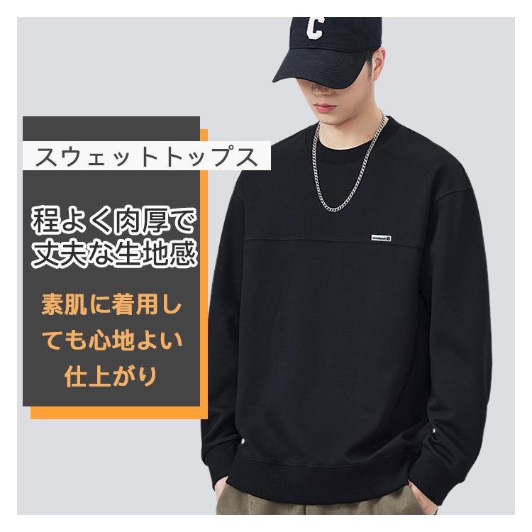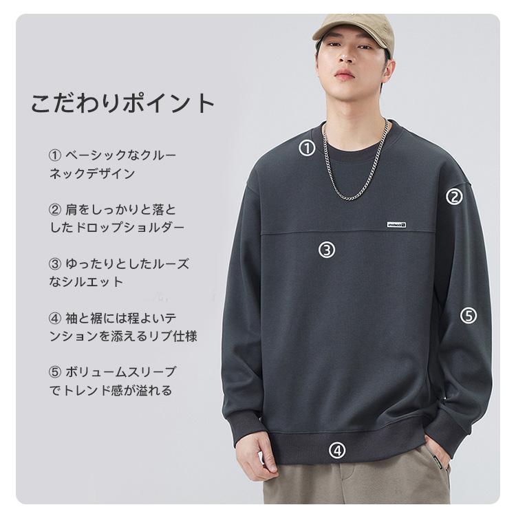 スウェット トレーナー 秋冬 無地 クルーネック 秋服 運動 トップス 長袖 シンプル ゆったり あったか 部屋着 メンズファッション