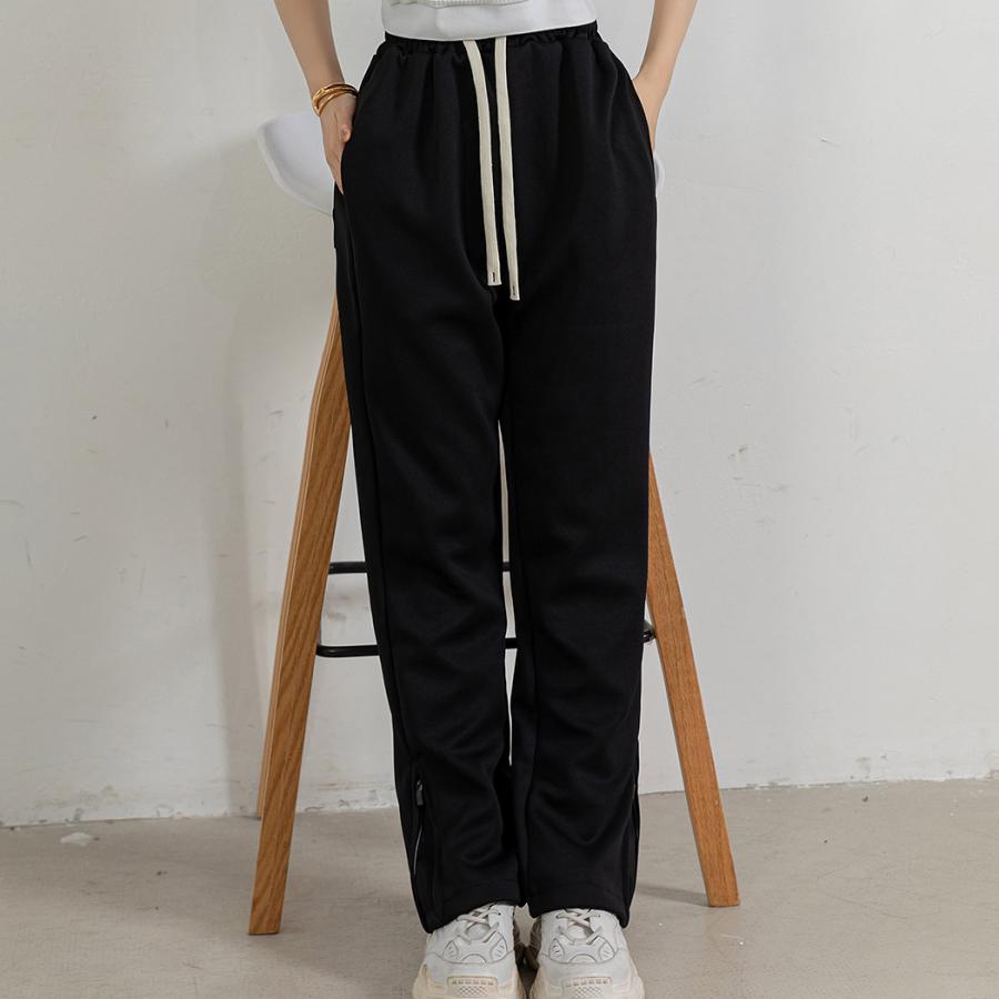 「個性見せるサイドファスナー」スウェット パンツ 紐 レディース ストレート ボトムス ウエストゴム ゆったり 無地 サイド 裾 ファスナー ルームウェア 部屋着 ポケット ロングパンツ ストリート リラックス 中厚手 スポーツ ダンス スポーティ 動きやすい 楽ちん 春夏 秋冬