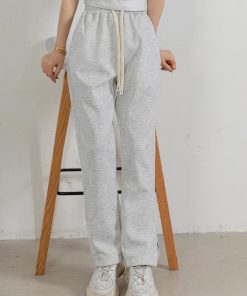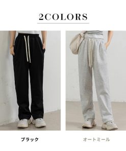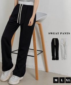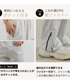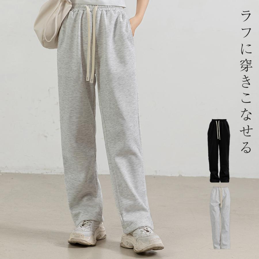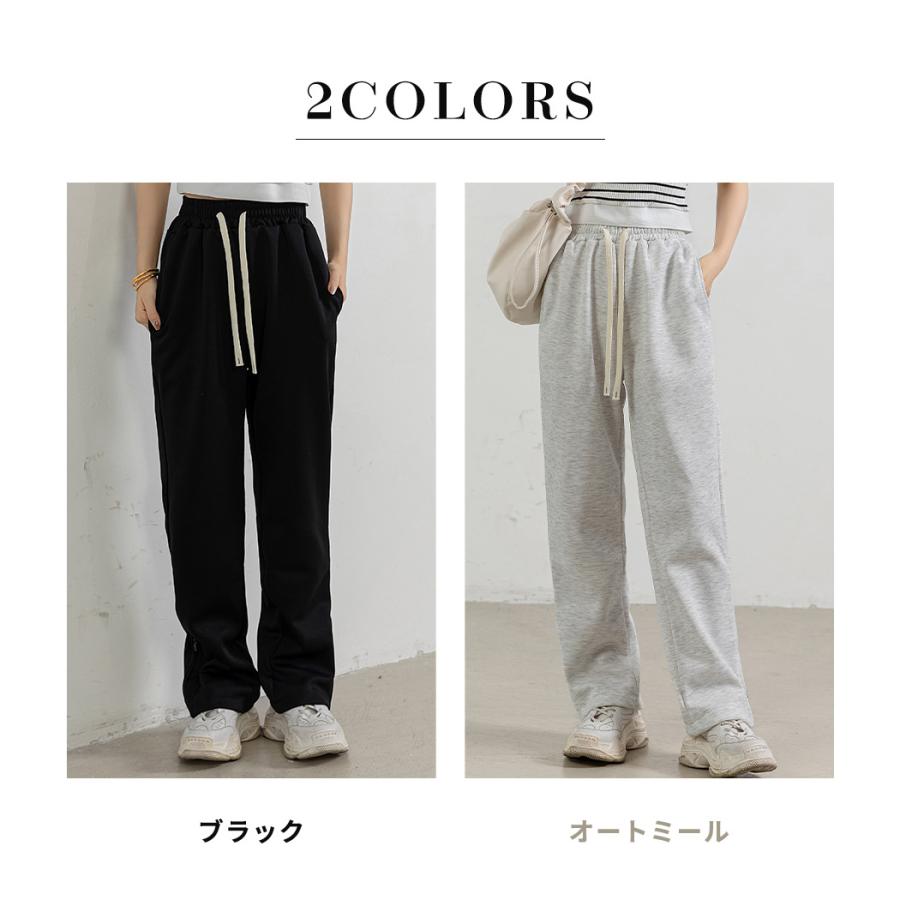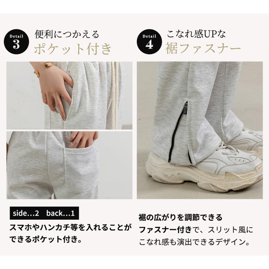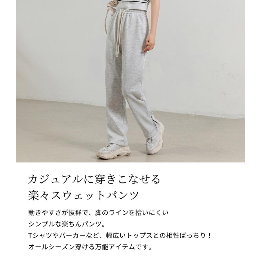 スウェット パンツ 紐 レディース ストレート ボトムス ウエストゴム ゆったり 無地 サイド 裾 ファスナー ルームウェア 春夏 秋冬