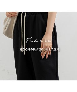 動きやすさが抜群で、脚のラインを拾いにくいシンプルな楽ちんパンツ。Tシャツやパーカー
