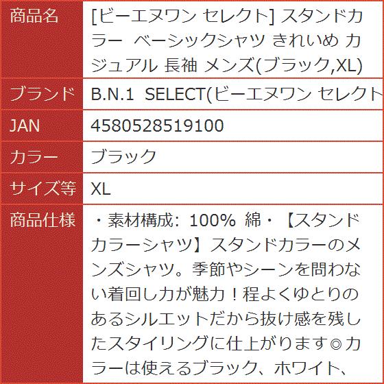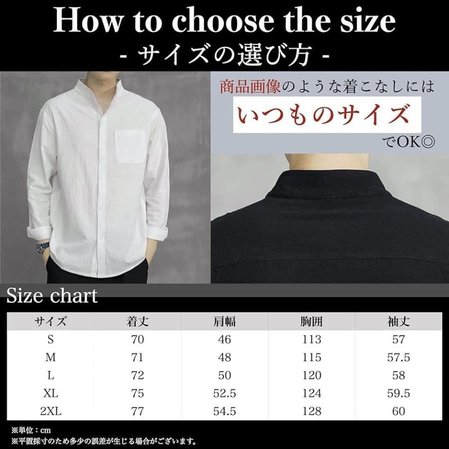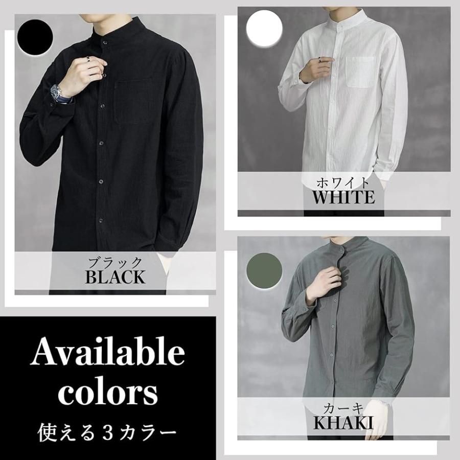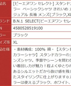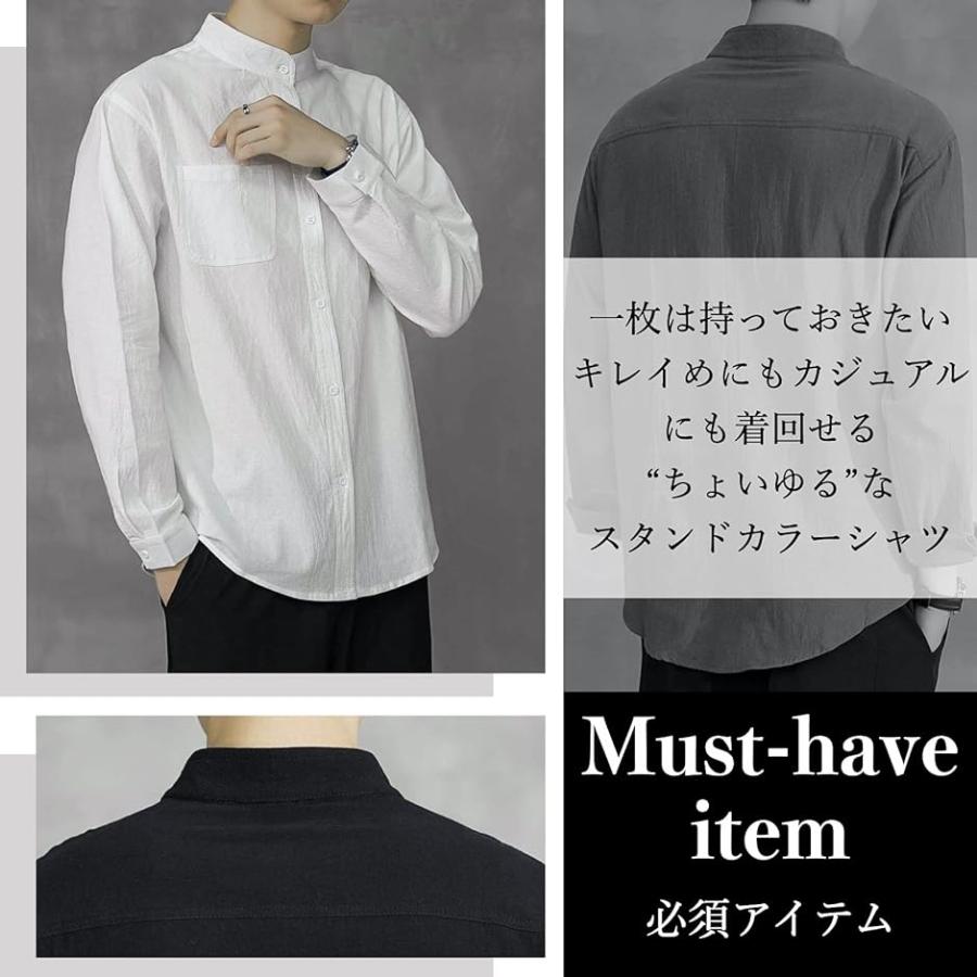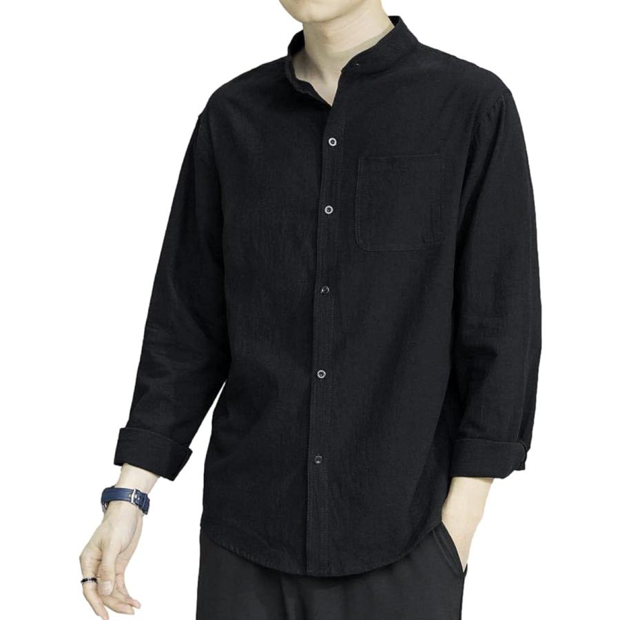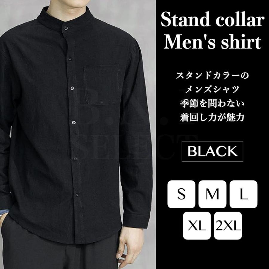 スタンドカラー ベーシックシャツ きれいめ カジュアル 長袖 メンズ( ブラック, XL)