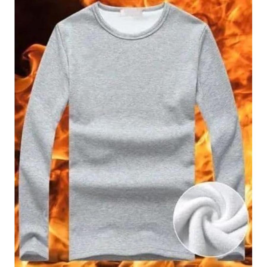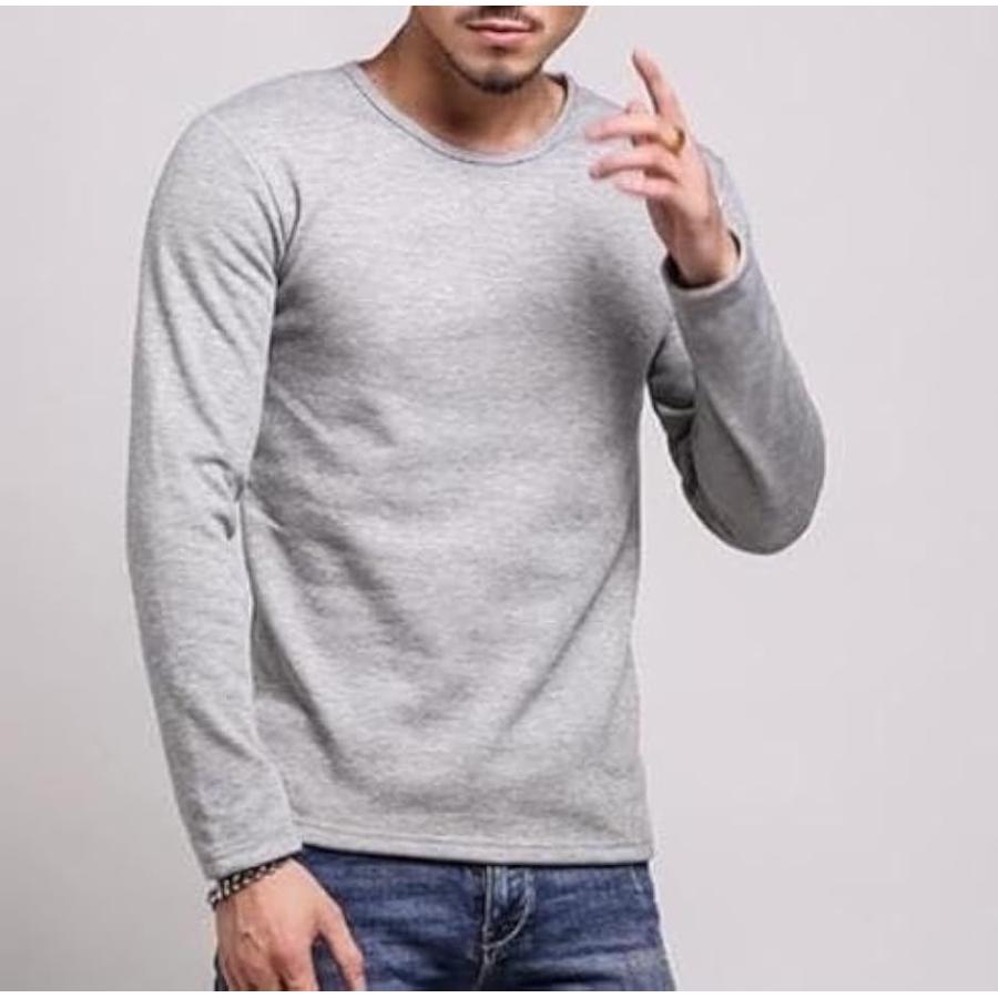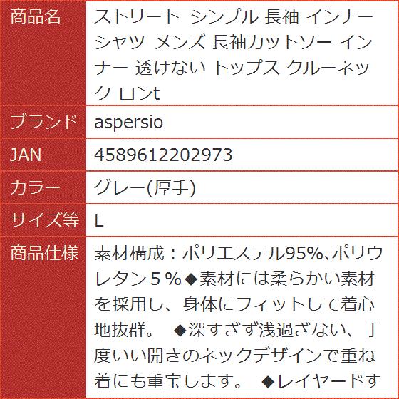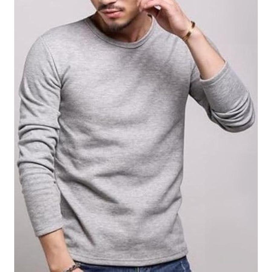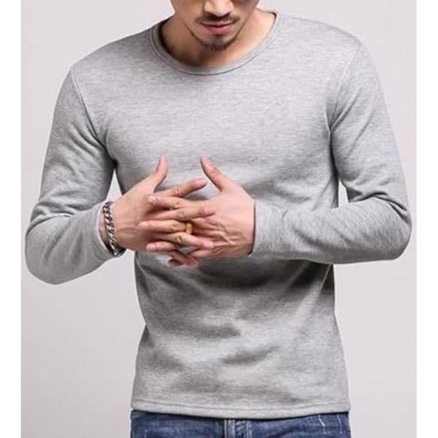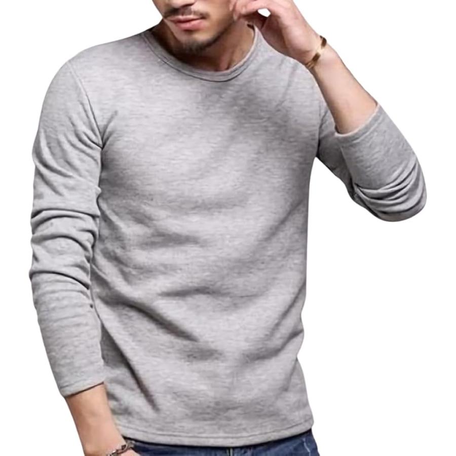 ストリート シンプル 長袖 インナーシャツ メンズ 長袖カットソー 透けない トップス クルーネック ロンt(グレー(厚手), L)
