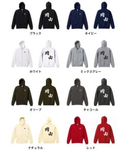 スポーツ トレーニング パーカー 練習着 ジップ 「都道府県デザイン 岡山 闘龍書体 斜め書き」 (AW)