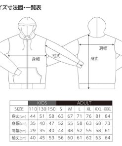 ※ キッズサイズには、フードひもがありませんのでご安心ください。子ども用衣料の安全に関する規格JIS L 4129に即しています。