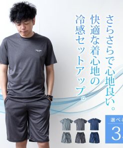 商品名:セットアップ メンズ 冷感 上下セット 部屋着 ルームウェア tシャツ 半袖 ストレッチ 吸水速乾