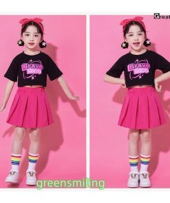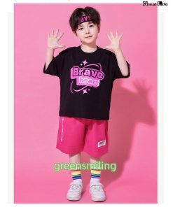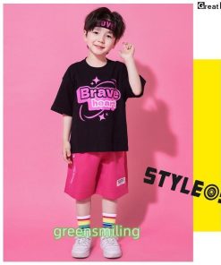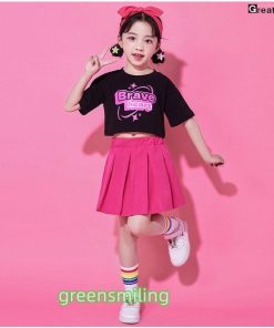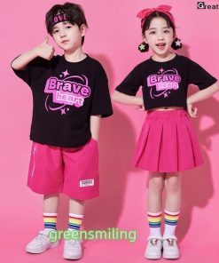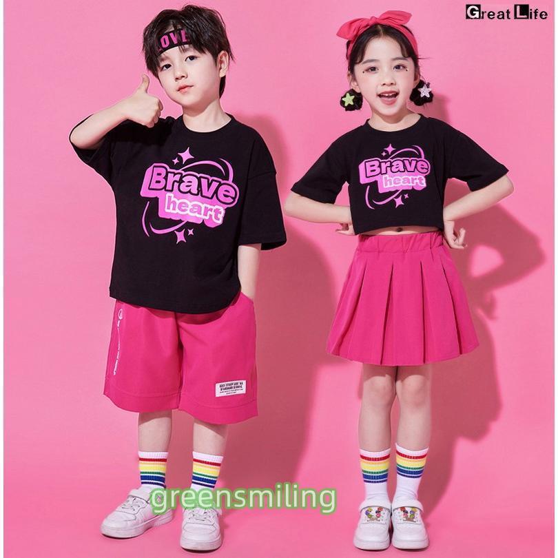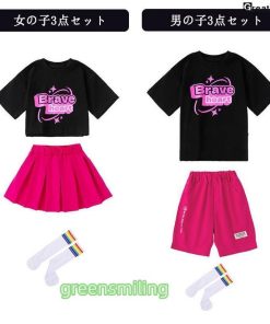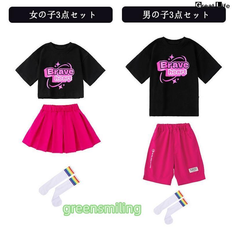 チアガール ブラック ピンク キッズダンス 衣装 セットアップ ステージ衣装 子供 へそを出す チアダンス jazz K-POP 応援団 発表会 練習着 団体服 女の子 男の子