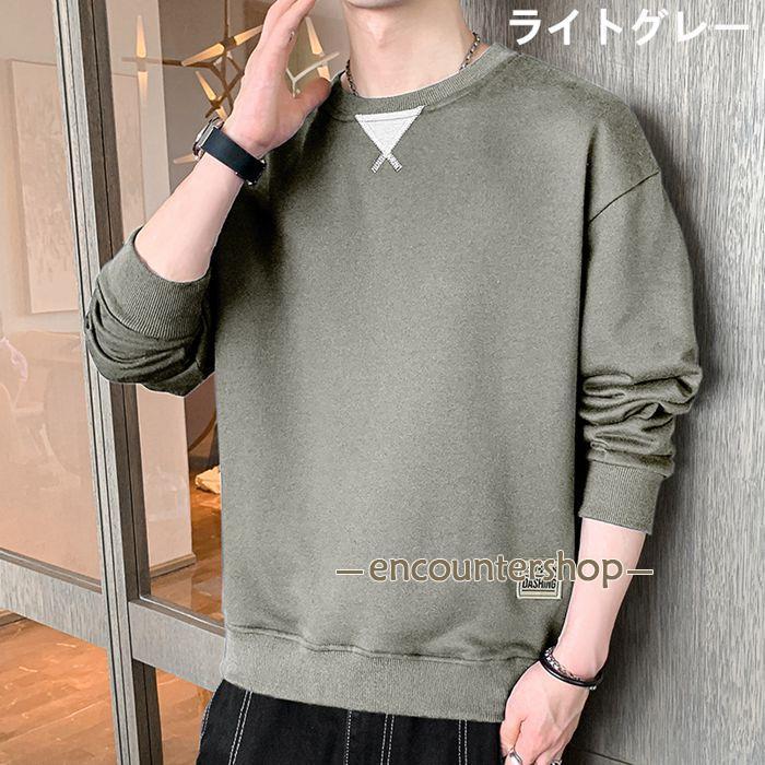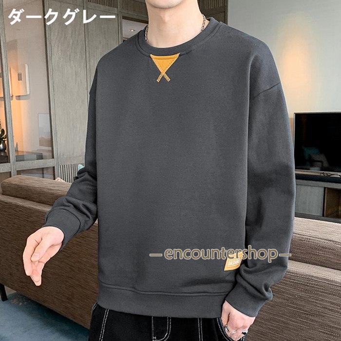 トレーナー メンズ スウェットシャツ 春服 秋服 長袖 クルーネック カジュアル トップス シンプル ゆったり プルオーバー お洒落