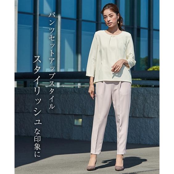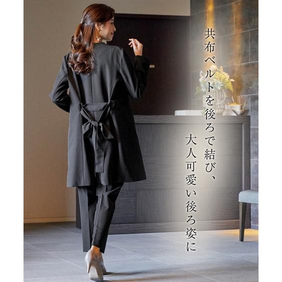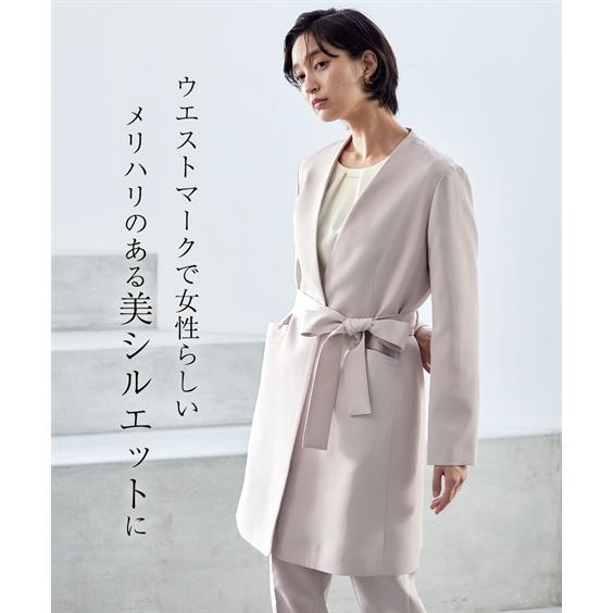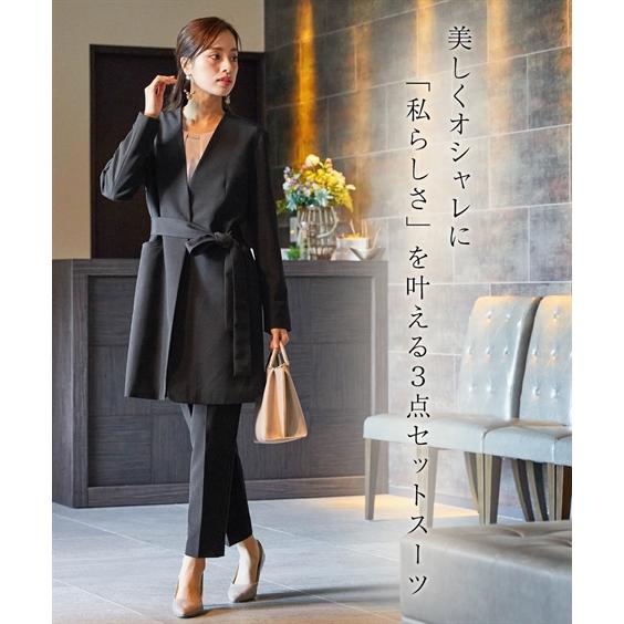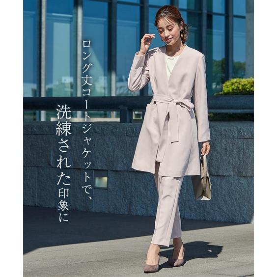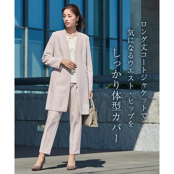 ニッセン スーツ パンツ フォーマル レディース 入学式 卒業式 Callarus ロング ジャケット テーパード 3点セット ロング丈 +タック ブラウス + ベルト
