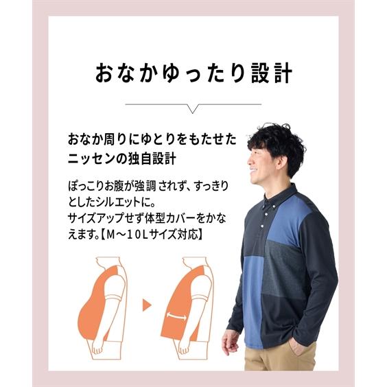 ニッセン ポロシャツ メンズ 綿100% 切替ボタンダウン 長袖 お腹ゆったり 消臭テープ付 M/L/LL nissen