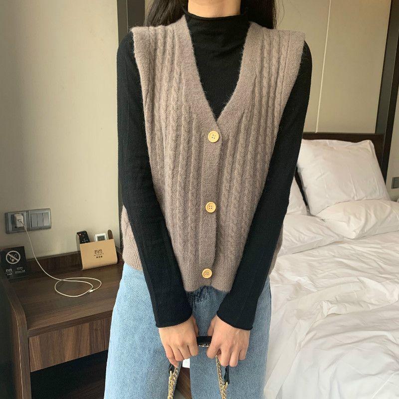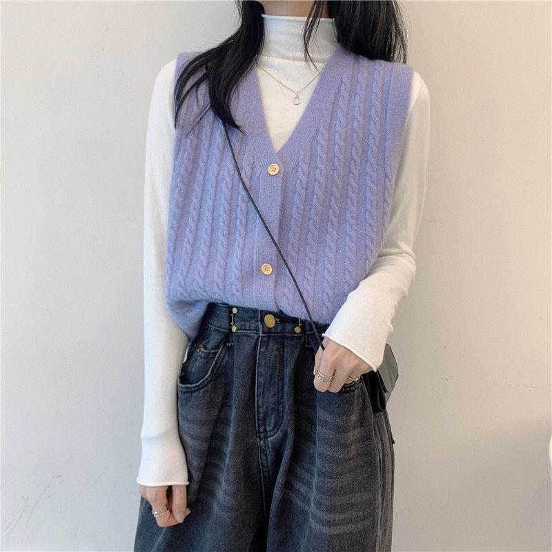 ニットベスト レディース コーデ 春 秋 ベスト 秋冬 前開き 重ね着 秋ベスト おしゃれ 着回し トップス