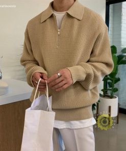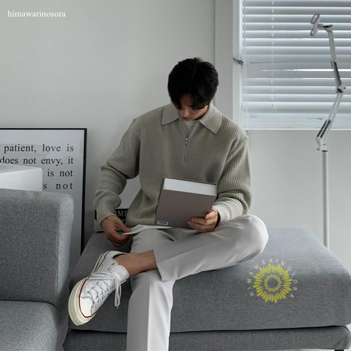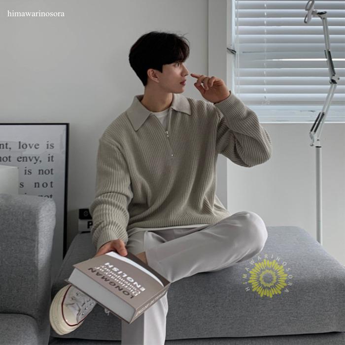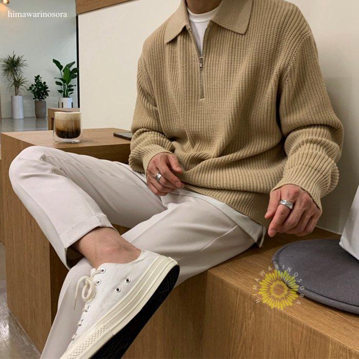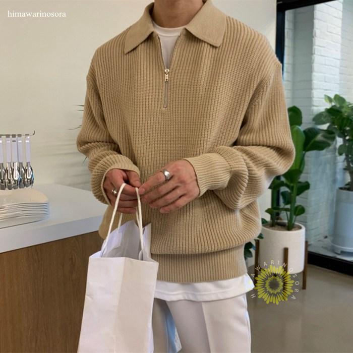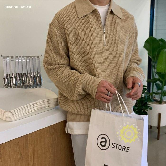 ニット セーター メンズ ハーフジップ ゴルフセーター 無地 春服 スウェット トップス カットソー メンズセーター