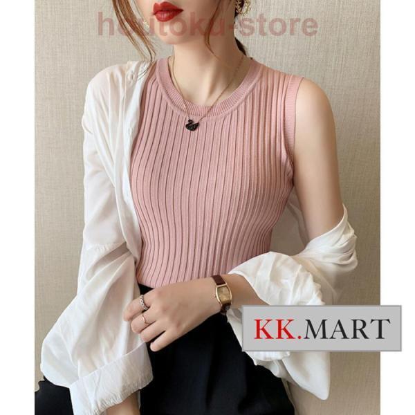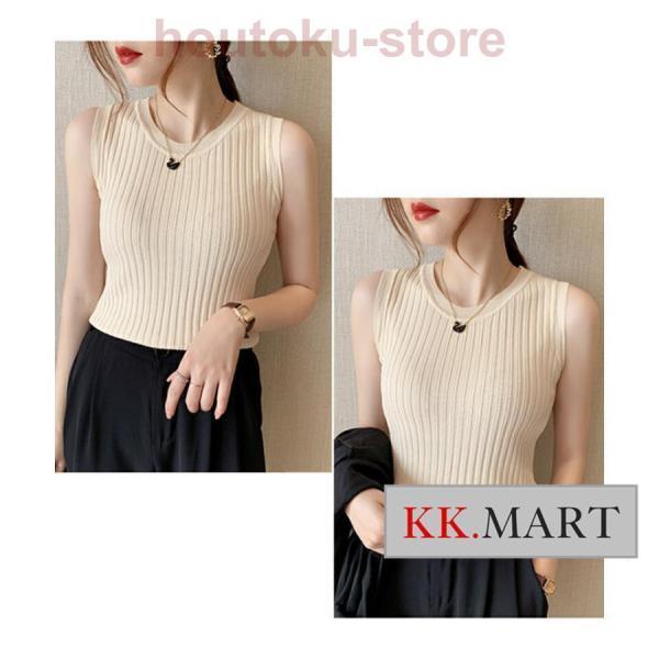 ノースリーブ ニット サマーニット レディース トップス リブ リブニット インナー タンクトップ クルーネック 細見え ブラ紐隠し ニットトップス オフィス