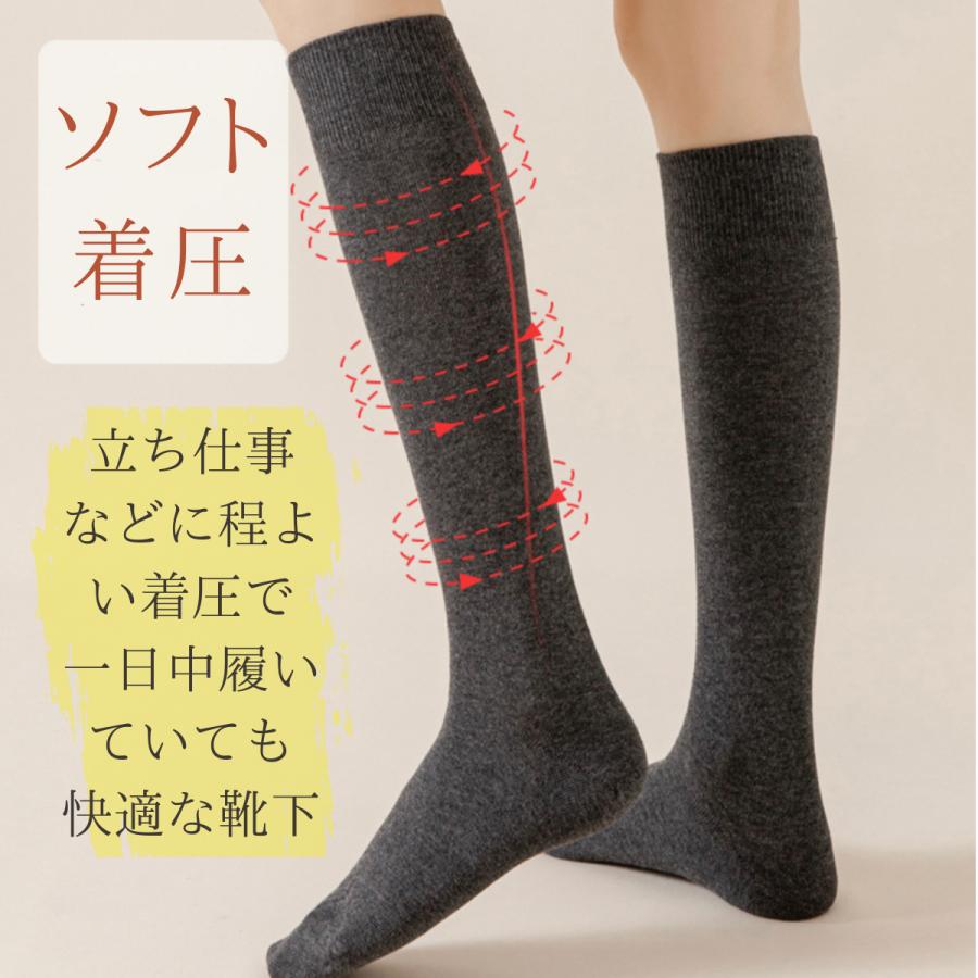 ハイソックス 黒 3足セット 春 レディース 綿混無地 美脚 シンプル ブラック 靴下 抗菌防臭 ソックス 吸湿 着圧 弾性