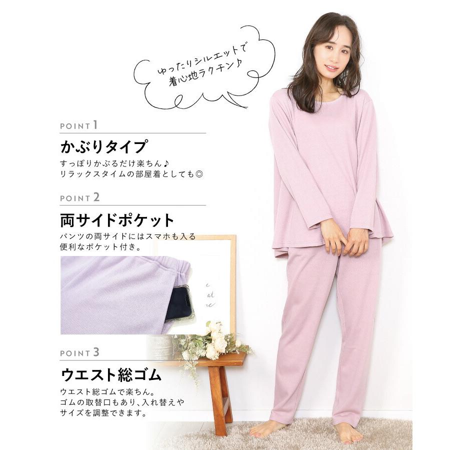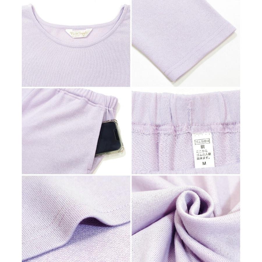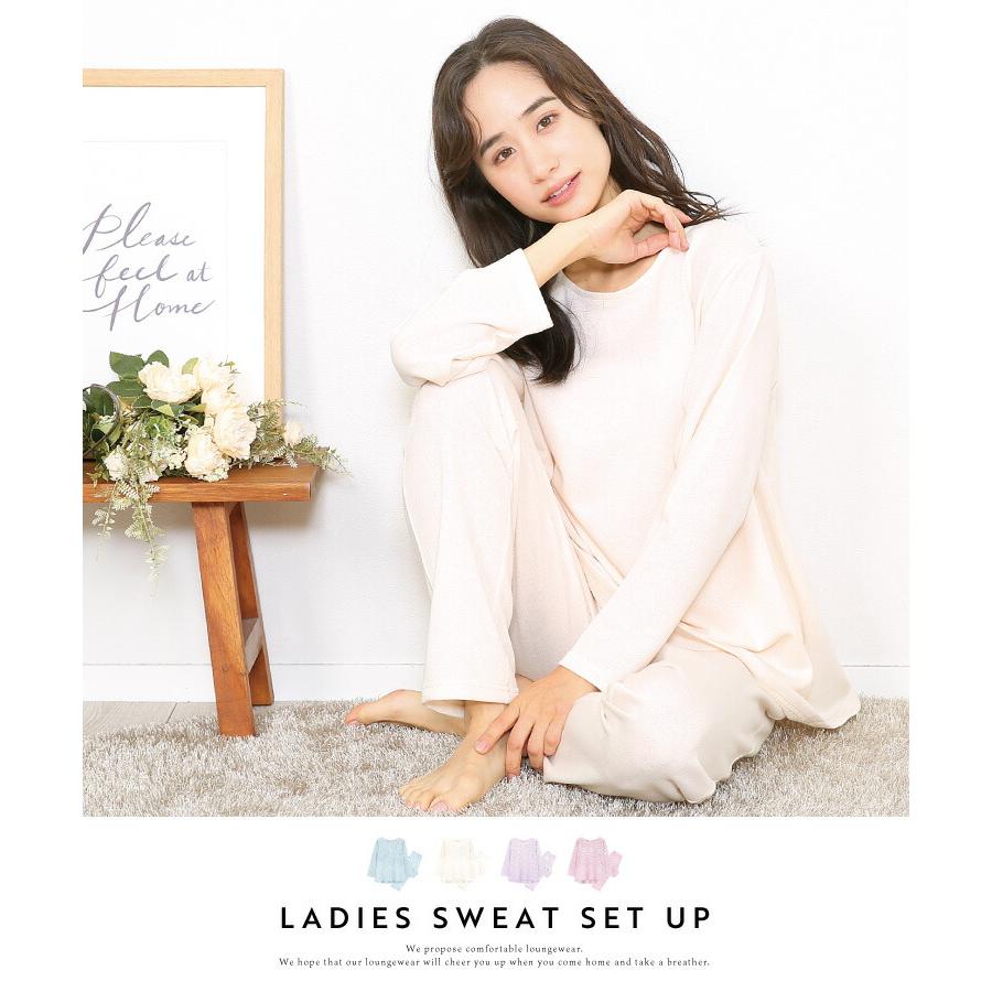 パジャマ レディース 長袖 かわいい ミニ裏毛 スウェット かぶり 上下 セット ルームウェア 春 秋 無地 上下セット 大人用 Roomsuppli w3-72525