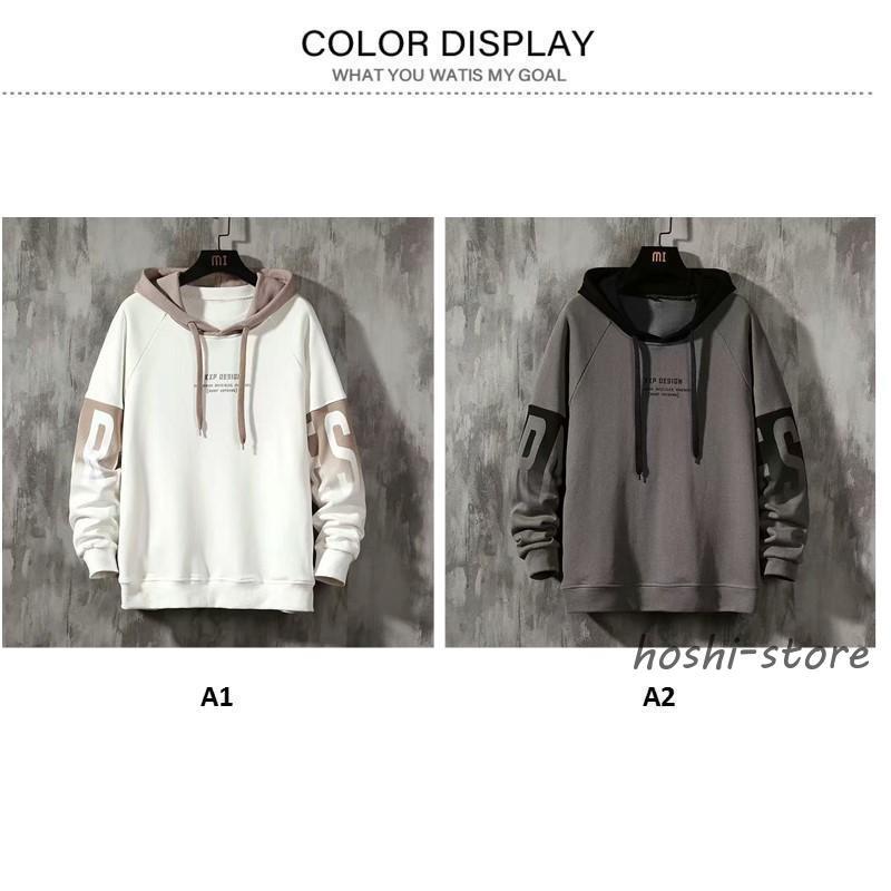 パーカー メンズ 秋服 プルオーバー トレーナー カットソー 長袖 フード付き 英文字 袖ライン カジュアル プルパーカー トップス スウェット