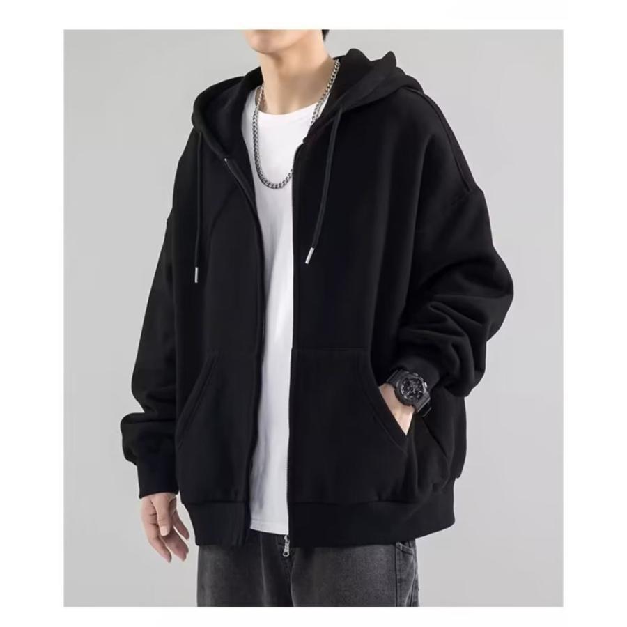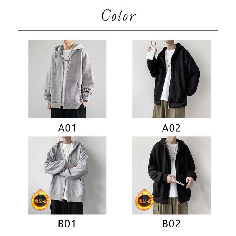 パーカー メンズ 裏起毛 長袖 スウェット フード付き ジップアップ 厚手 無地 春秋冬 トレーナー アウター 着痩せ 防寒 暖か ゆったり スポーツ