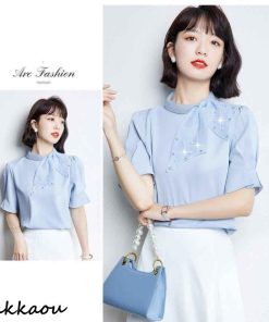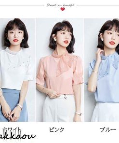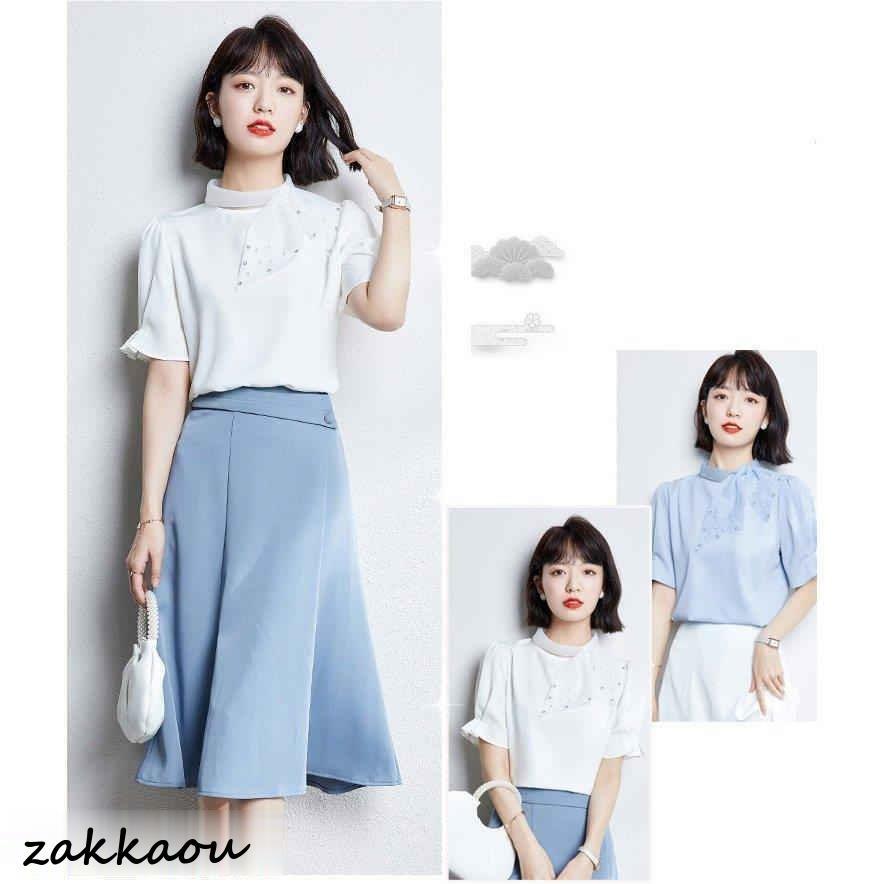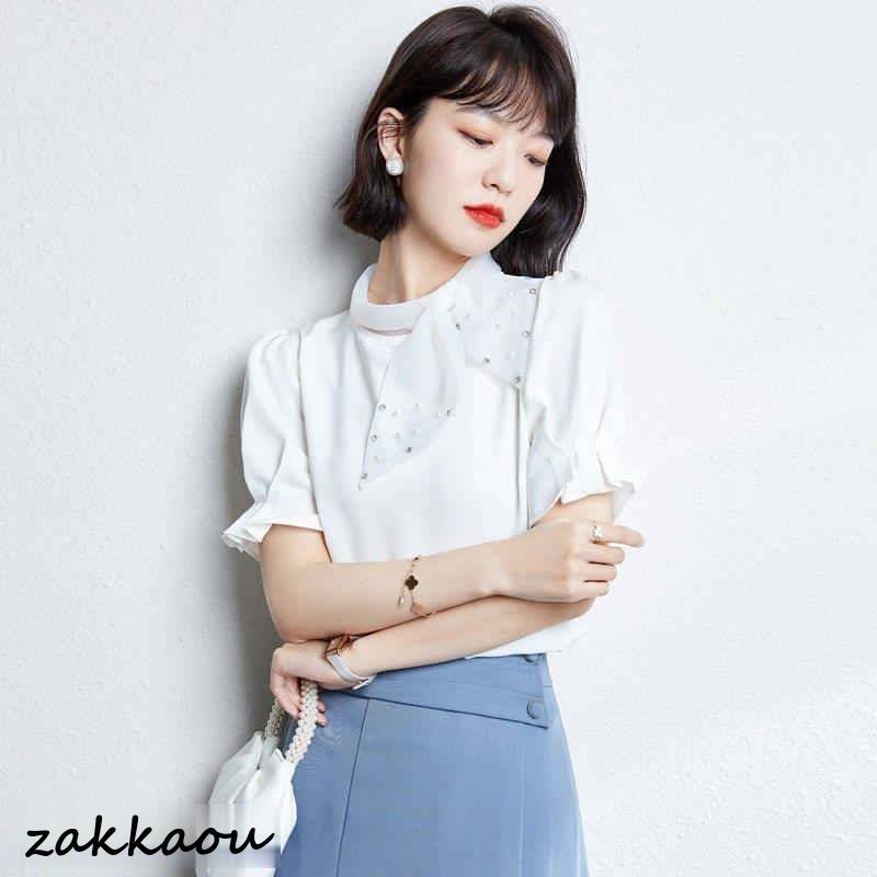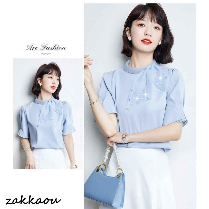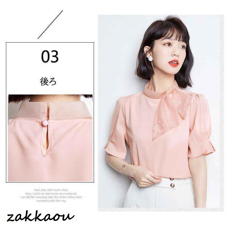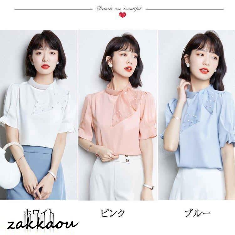 連携キーワード:ブラウス レディース 40代 春夏新作 オシャレブラウス 白シフォンシャツ 半袖トップス リボン パフスリーブブラウス 大人 通勤OL ゆったり シャツ 韓国風 大きいサイズ 30代 50代