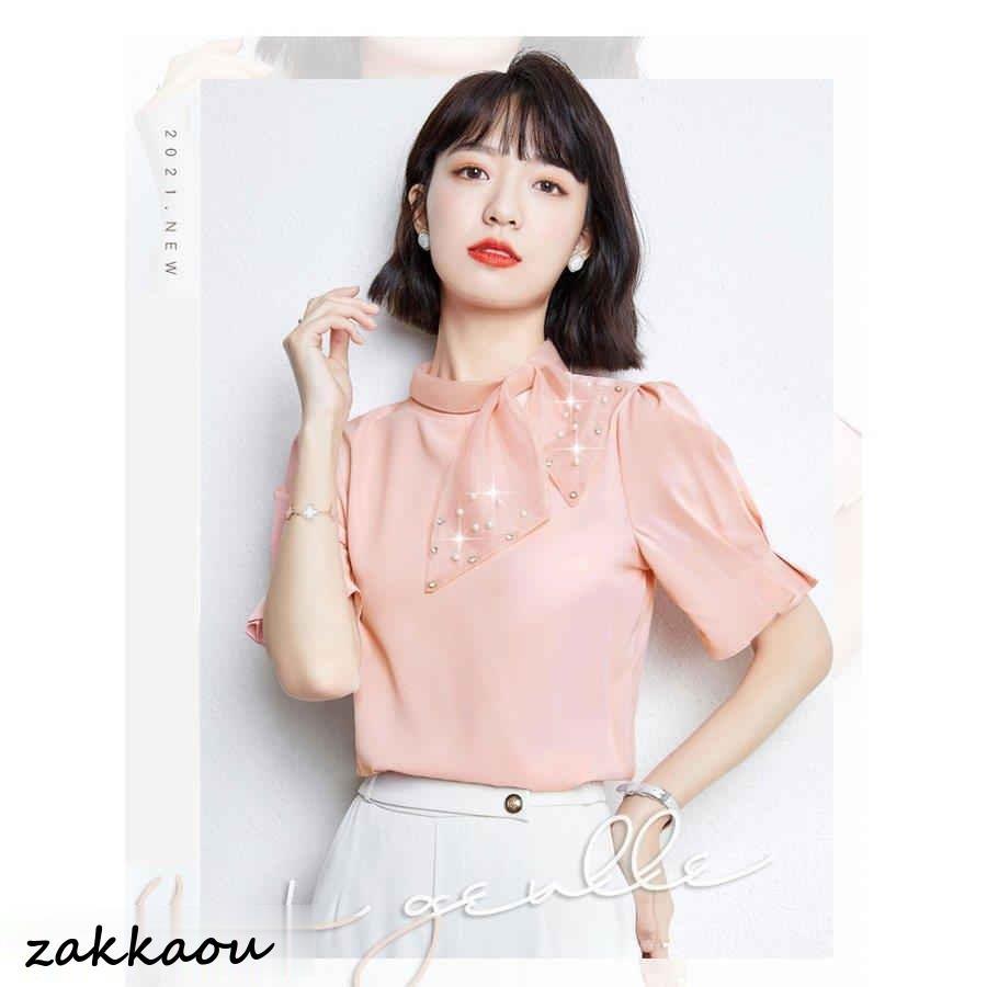 ブラウス レディース 40代 春夏新作 オシャレブラウス 白シフォンシャツ 大人 シャツ 半袖トップス 50代 パフスリーブブラウス 通勤OL 30代 ゆったり リボン