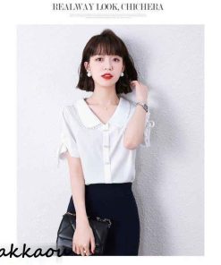 連携キーワード :ブラウス レディース 40代 春夏 オシャレブラウス 半袖トップス 白シフォンシャツ パフスリーブ おしゃれ 上品 通勤OL オフィス ゆったりシャツ 30代50代 新作 P