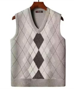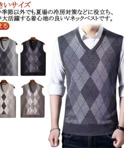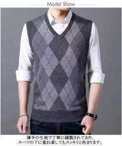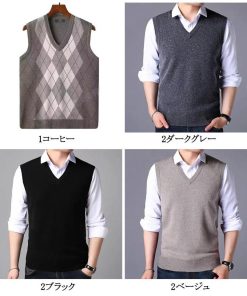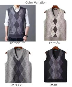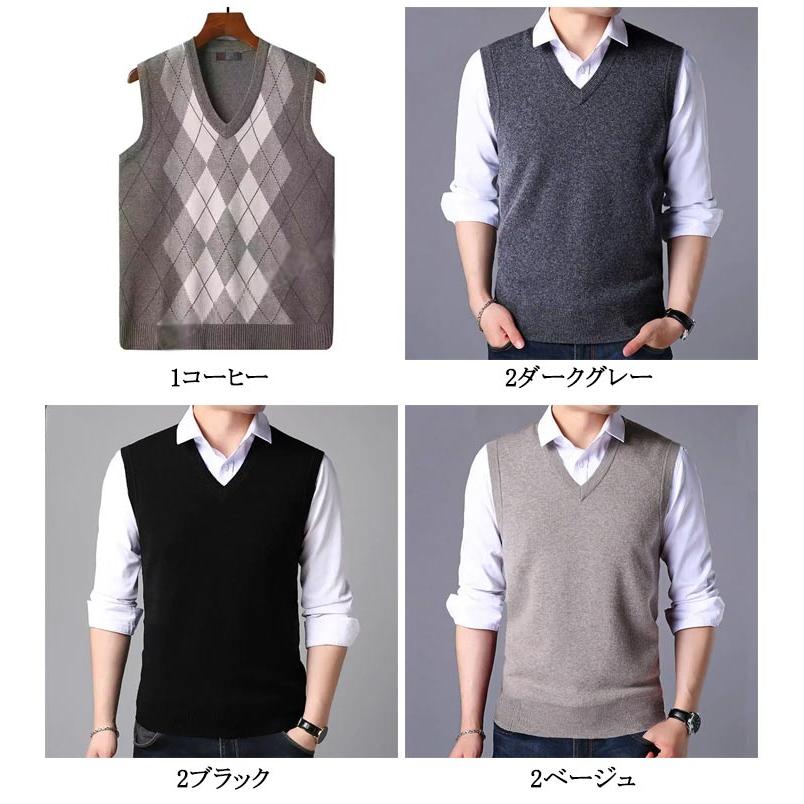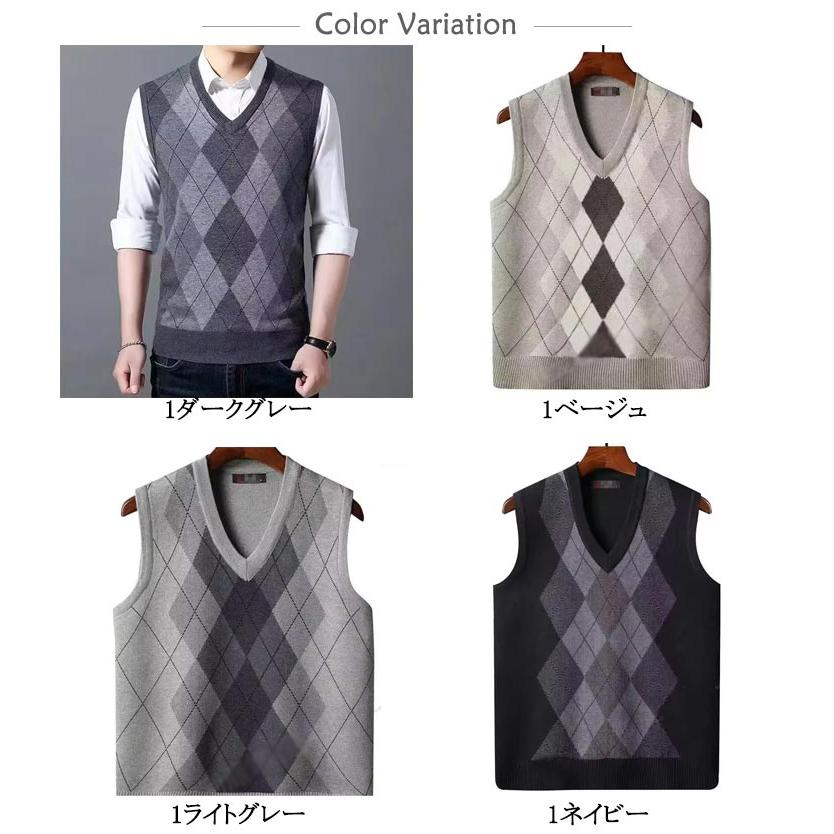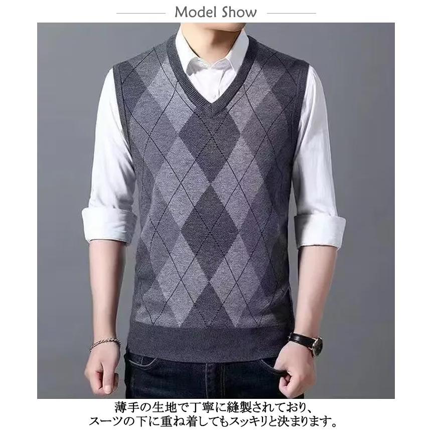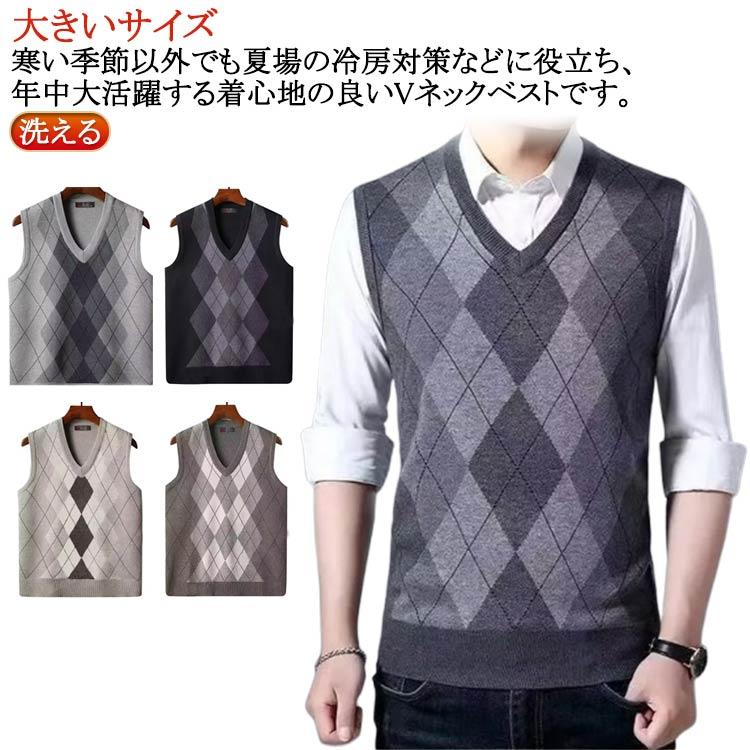 プルオーバー ニット 大きいサイズ シンプル 洗える ウールライク ビジネス アーガイル柄 メンズ Vネック フォーマル 無地 ベスト