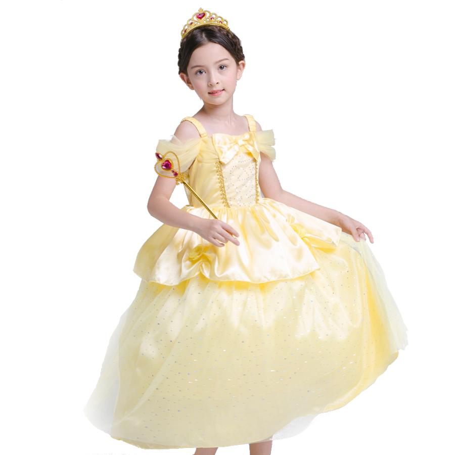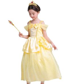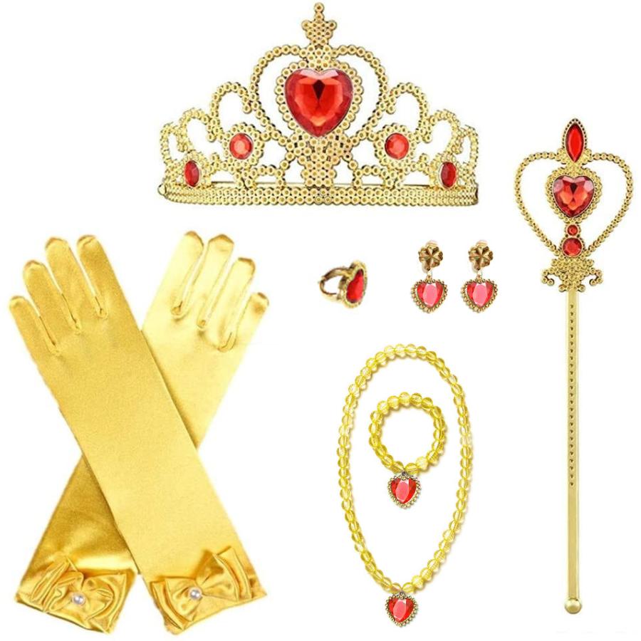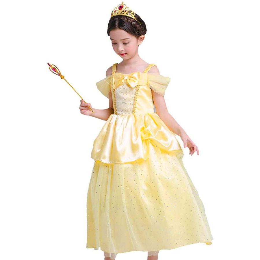 ベル ドレス 子供 コスプレ 衣装 美女と野獣 豪華8点 セット 手袋 ティアラ ステッキ ネックレス イヤリング など 100 110 120 130 140 CREDIBLE