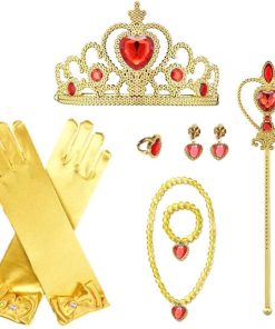 美女と野獣 ベル ドレス コスチューム 豪華8点セット ( プリンセスドレス , リボン付グローブ, ハートのティアラ, 魔法のステッキ, ネックレス, イヤリング, 指輪, ブレスレット)