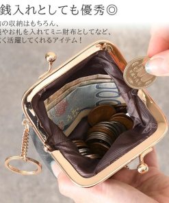 開閉はクラシックな金属フレーム式がま口タイプで、片手でも簡単に開け閉めできてとても便利。さらに、チェーン付きのキーリングがついており、鍵やバッグに取り付けることで持ち運びも楽々。バッグの中でも見つけやすく、デザイン性と機能性を兼ね備えています。