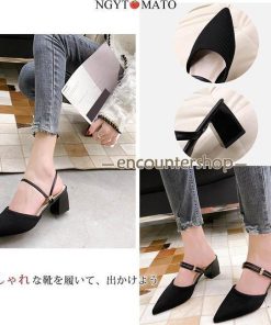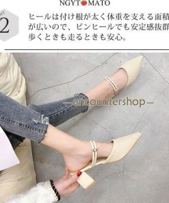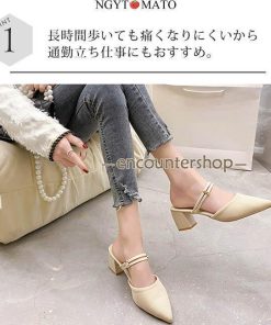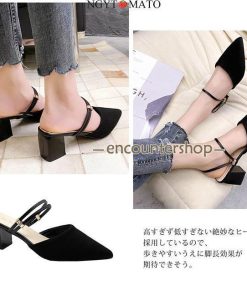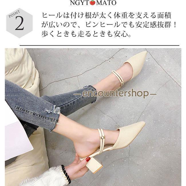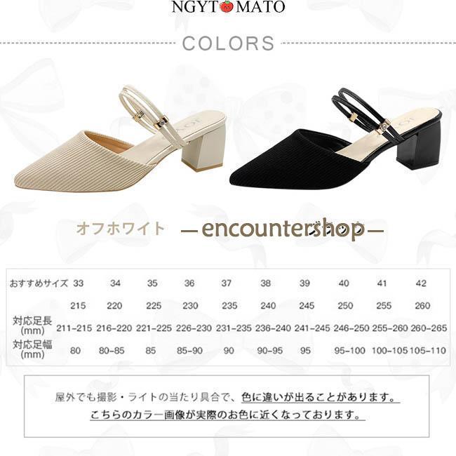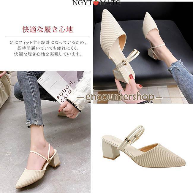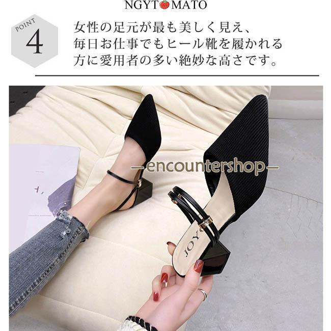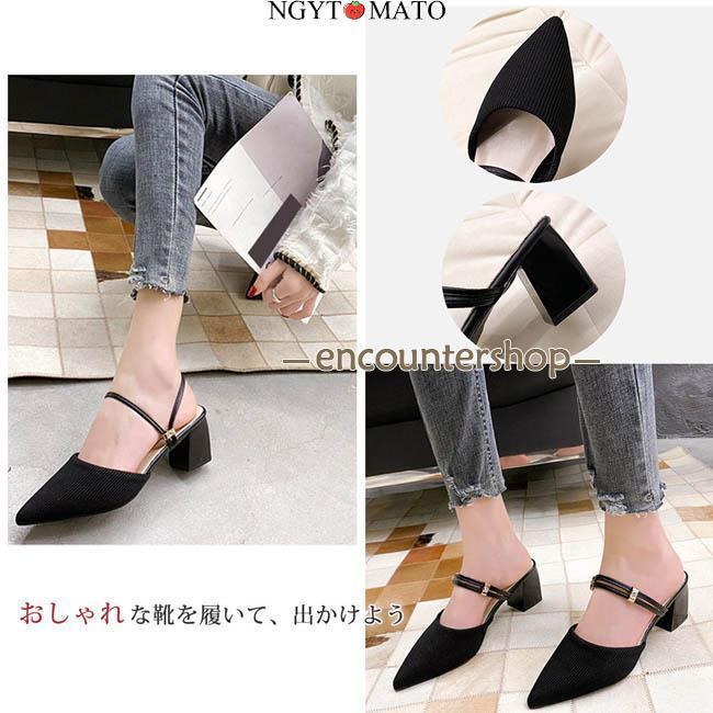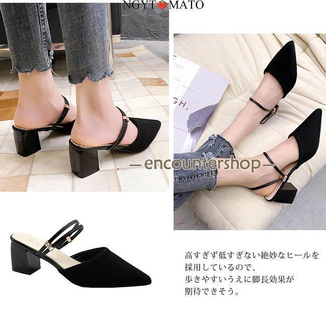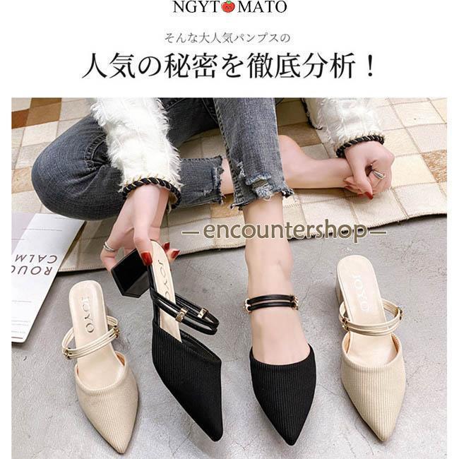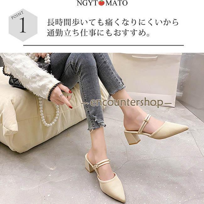 ミュールパンプス レディース ミュールサンダル ポインテッドトゥ 太めヒール パンプス かかとなし ミュール 2way カジュアル 履きやすい 歩きやすい おしゃれ