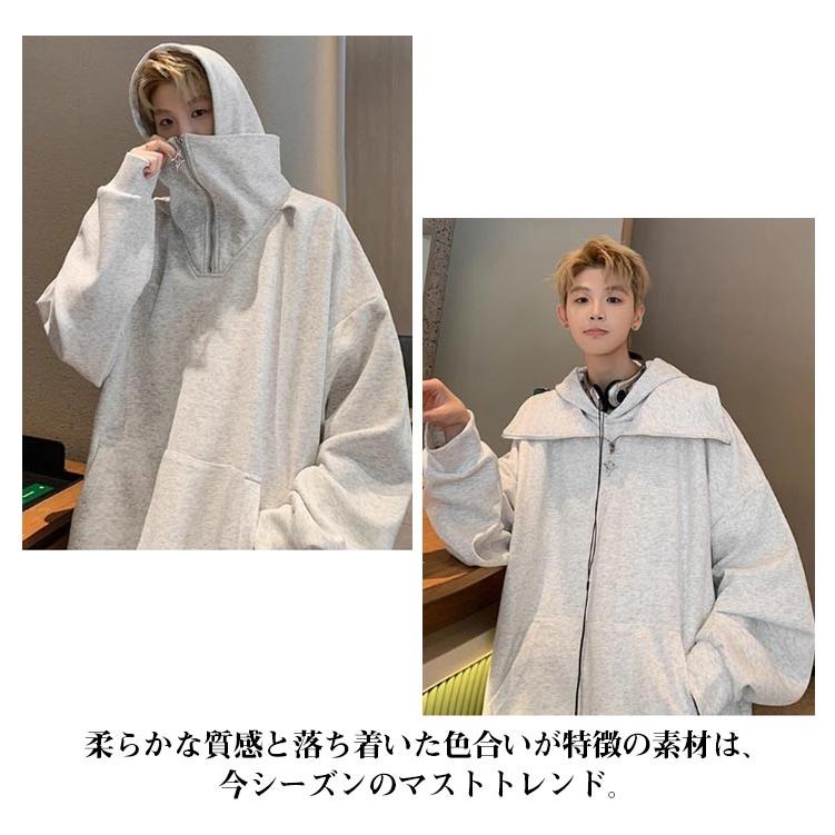 メンズ パーカー ハイネック おしゃれ 春秋 プルオーバー トップス 大きい サイズ 冬 長袖 スウェットパーカー 韓国風 カジュアル パー