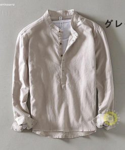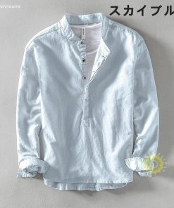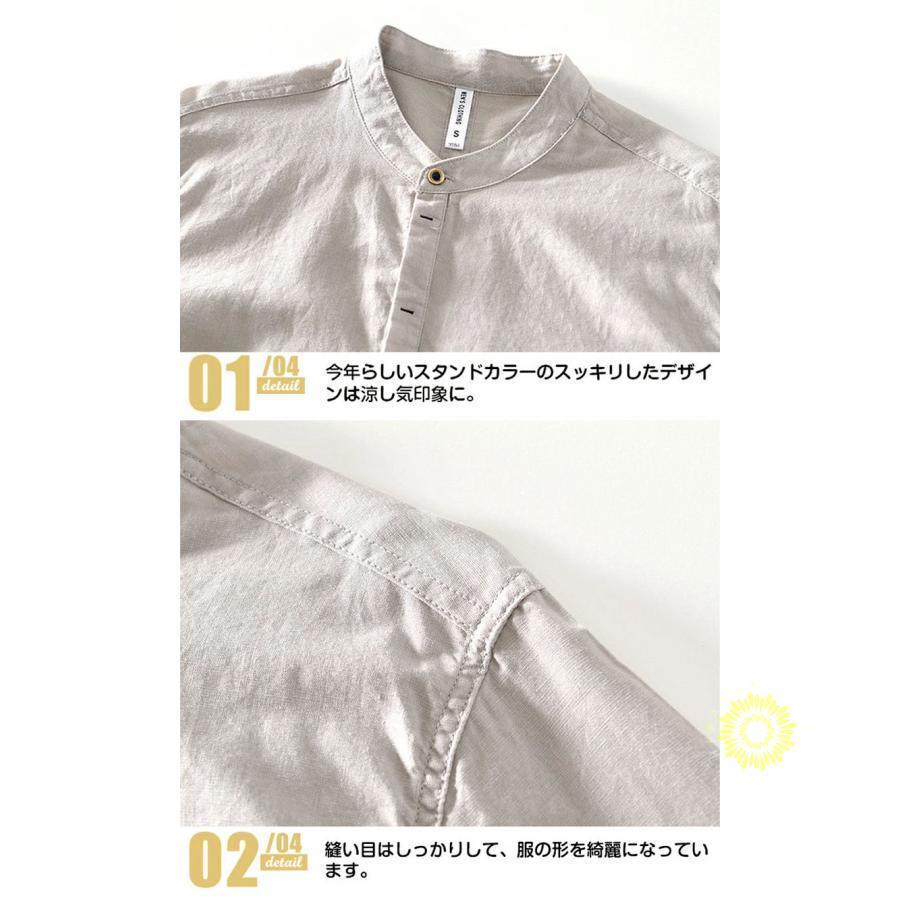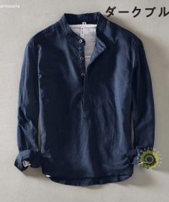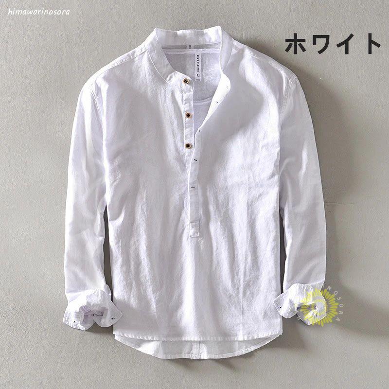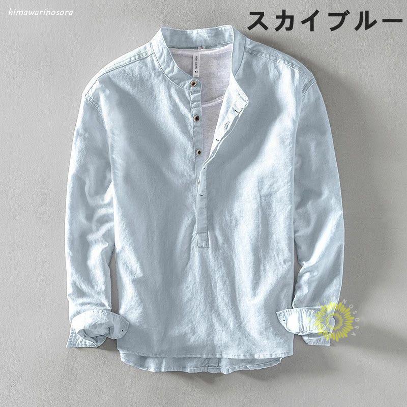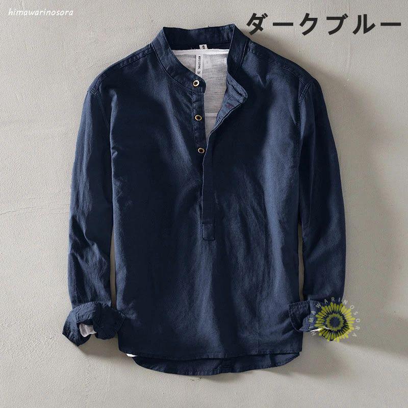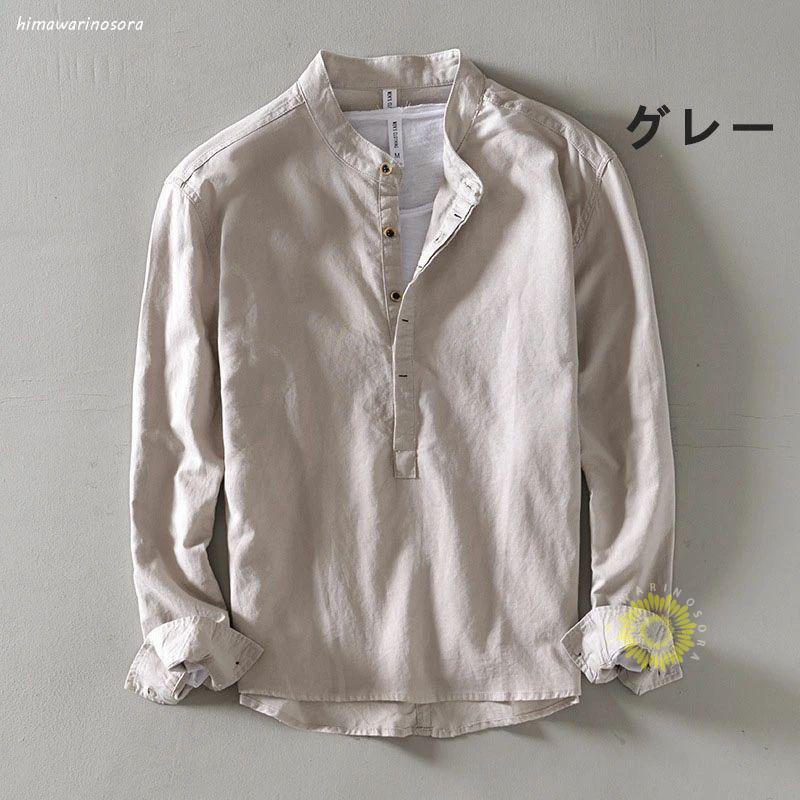 リネンシャツ プルオーバーシャツ カジュアルシャツ メンズ トップス 麻シャツ 長袖シャツ 無地 綿麻シャツ 麻 春 夏 秋 長袖 薄手 サマー 通勤 普段着 メンズシ