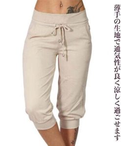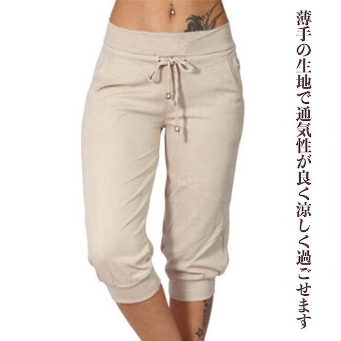 レディース スウェットパンツ 薄手 七分丈 ハイウエスト ゆったり ひざ丈 クロップド スポーツ ルームウェア 涼しい ウエストゴム